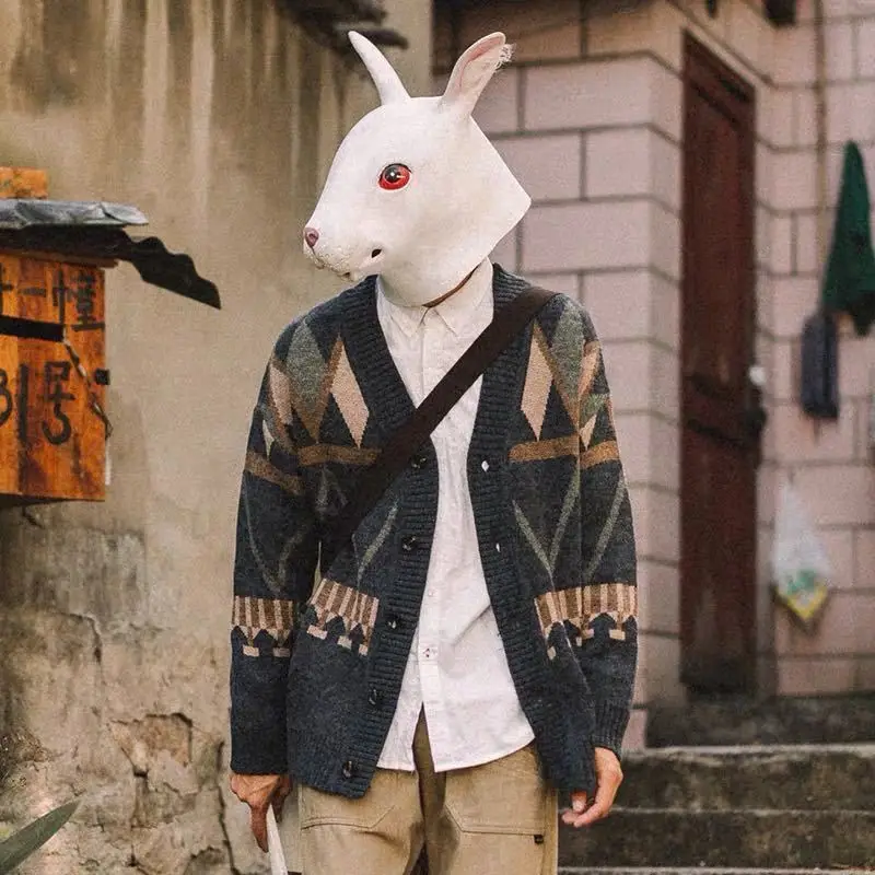 Винтажный вязаный свитер в японском стиле, свободный мужской кардиган, вязаное мешковатое пальто в стиле хип-хоп, уличная одежда