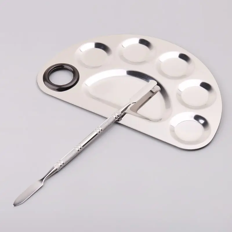 Палетка из нержавеющей стали, лоток для смешивания, лопатка, набор для дизайна ногтей, школьные принадлежности, акварельная масляная краска, макияж