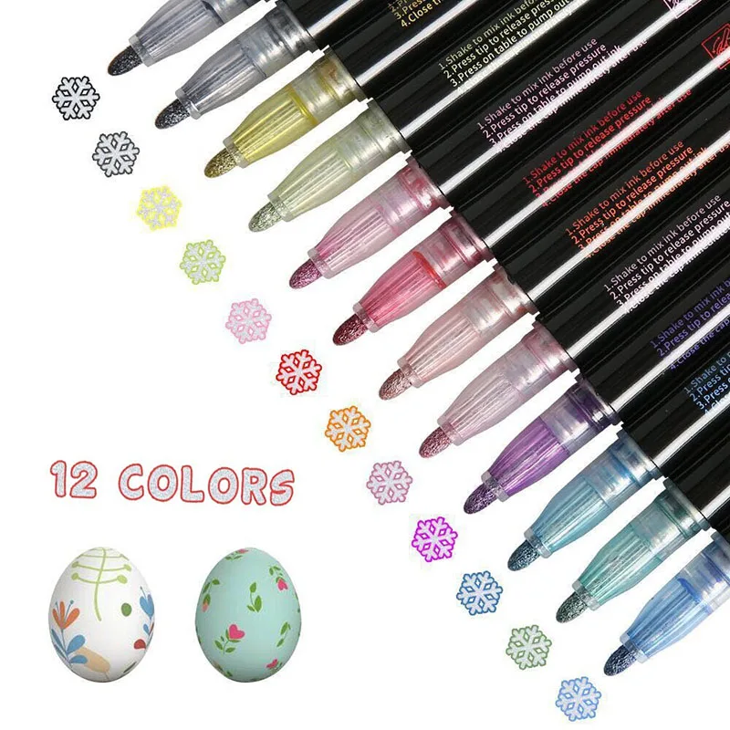 12 шт.компл. контур Маркеры цвета "металлик", двойная линия Волшебн...