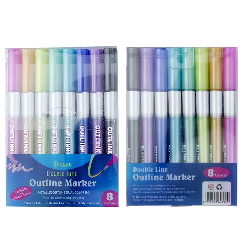 8/12 шт Цвета контур флуоресцентных ручек Kawaii металлический двойной линии для рисования маркера для рисования школьные принадлежности