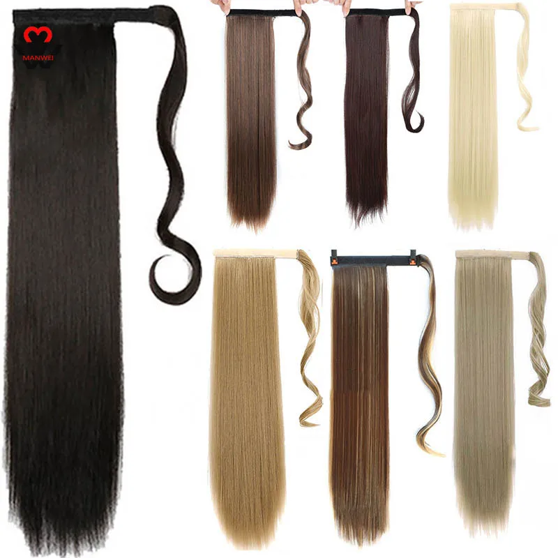 MANWEI длинные прямые волосы для конского хвоста, синтетические удл...