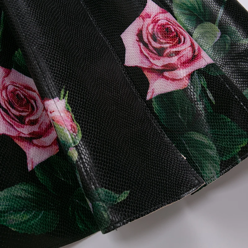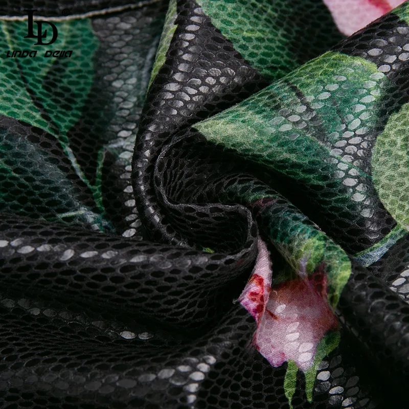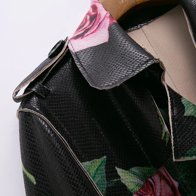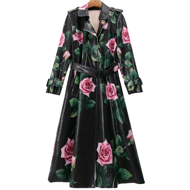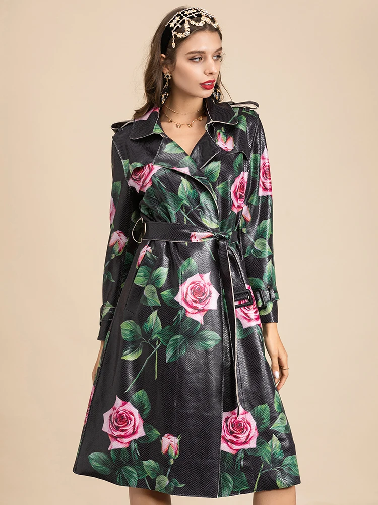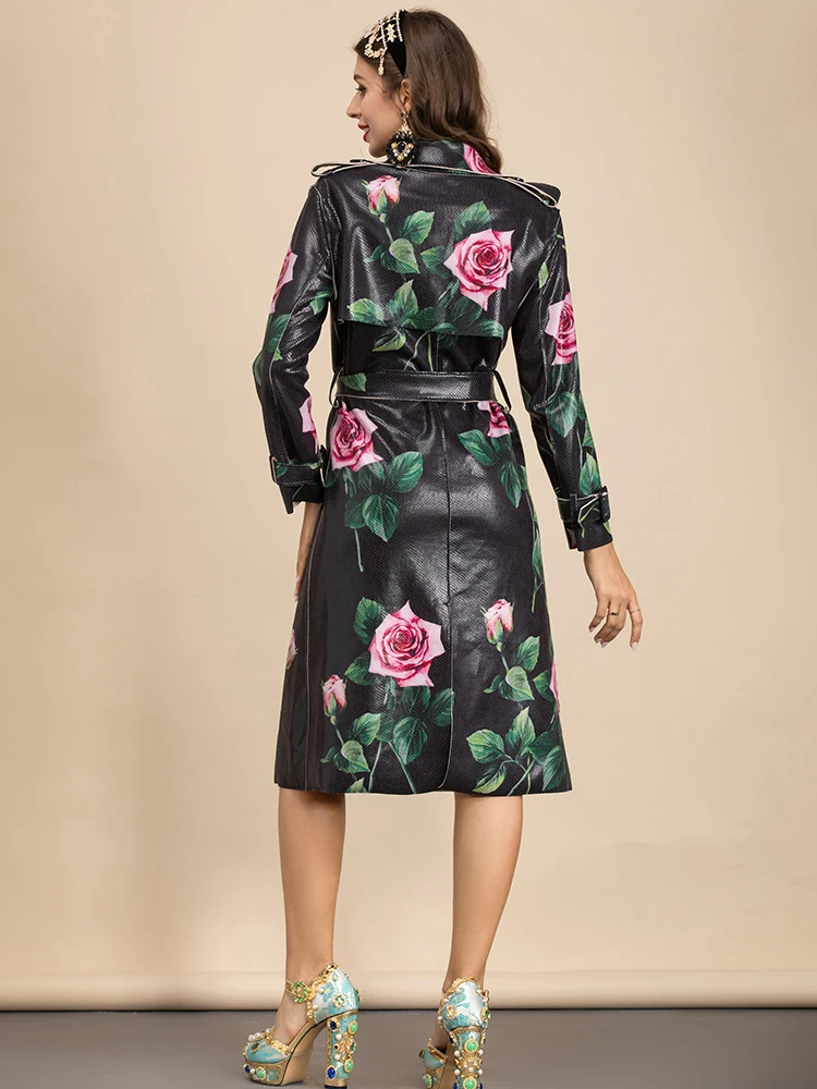 LD LINDA DELLA модный подиумный весенний длинный плащ из искусственной кожи, Женское пальто с отложным воротником и поясом, винтажное пальто с принтом розы, верхняя одежда