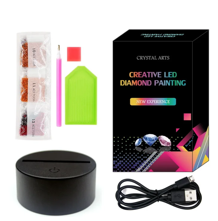 Список товаров:Акриловая доска, бриллианты, инструмент, основание, usb-кабель для зарядки.