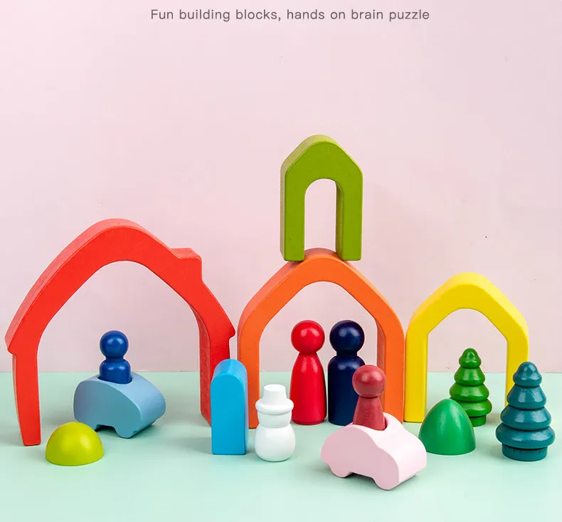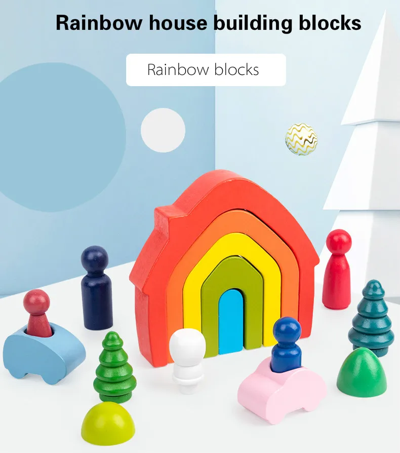 Детский Деревянный конструктор Монтессори, Радужный дом, набор куко...
