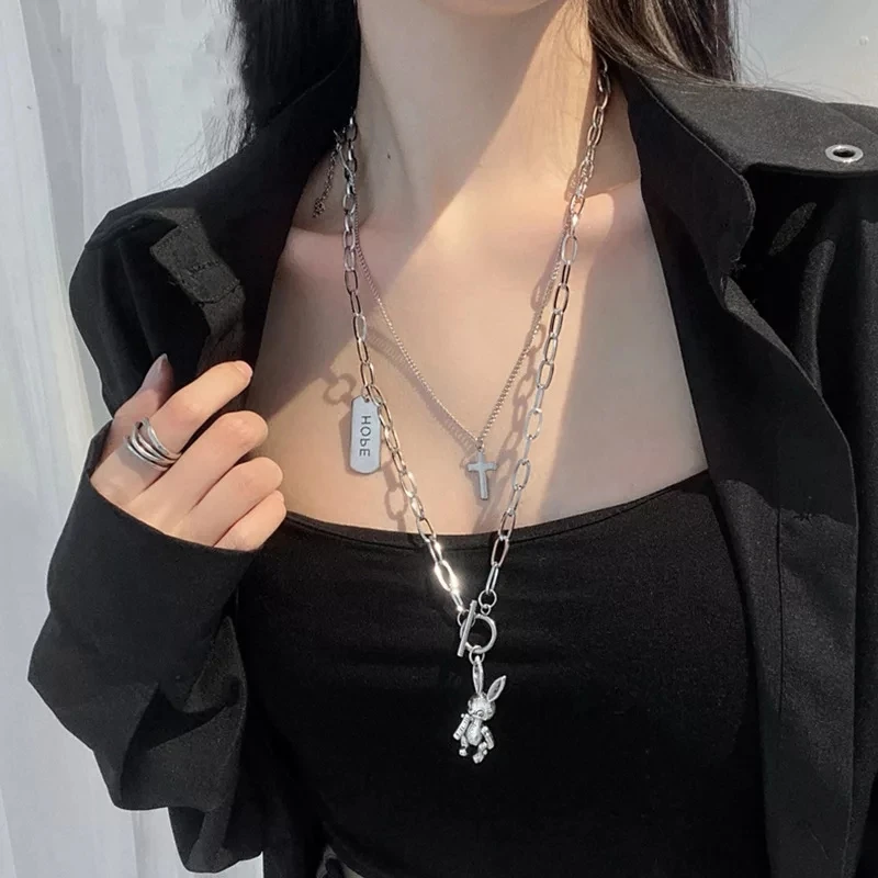 Многослойная цепочка-подвеска в стиле хип-хоп, 2021, для женщин, мужчин, ювелирная монета, кролик, крест, кулон, ожерелье, аксессуары, подарки