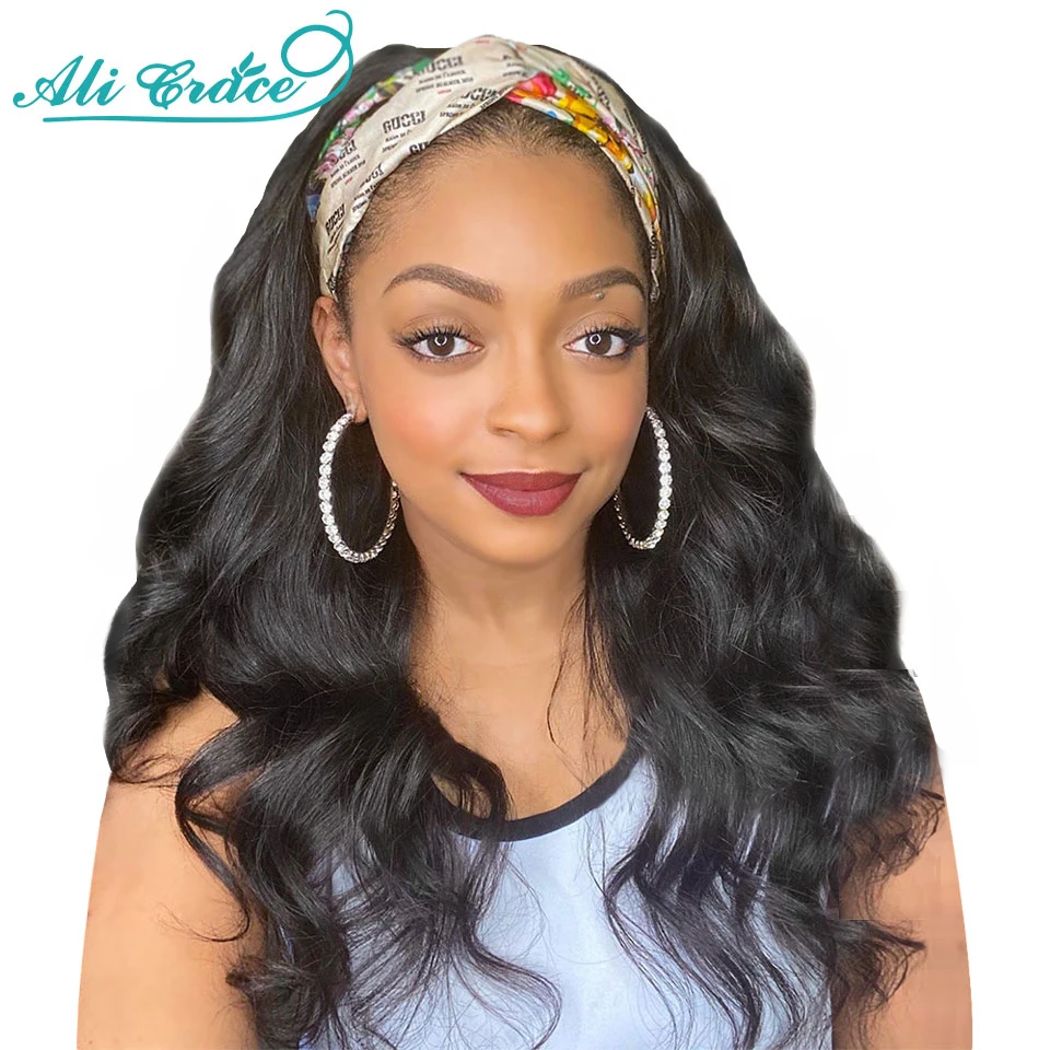 Женский бразильский парик Ali Grace, волнистые волосы с регулируемой челкой, без клея, без геля, парик с головной повязкой