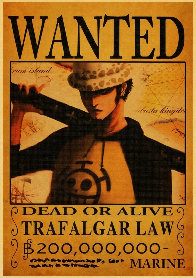 Классического японского аниме Одна деталь хотели с персонажами Монки Д Luffy Wanted Ретро Плакаты крафт Бумага напечатаны номер декора стен