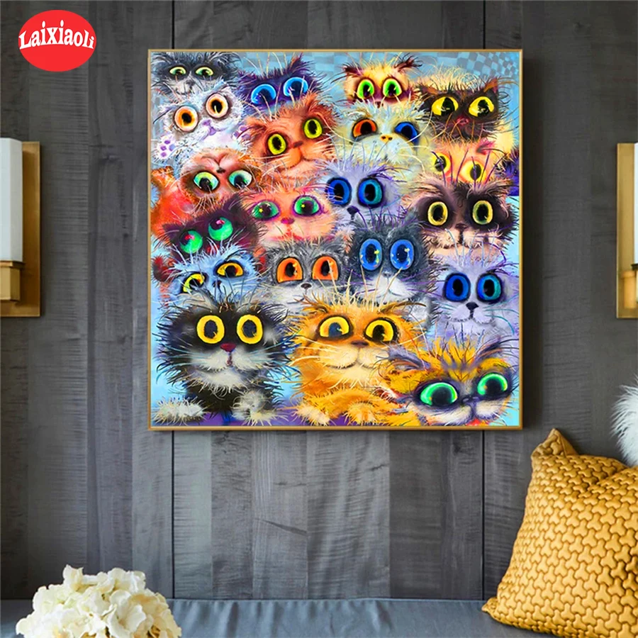 Алмазная живопись 5D "сделай сам", абстрактное мультяшное искусство, милый кот, Лидер продаж, домашнее искусство, вышивка крестиком, полный квадратный алмаз, вышивка