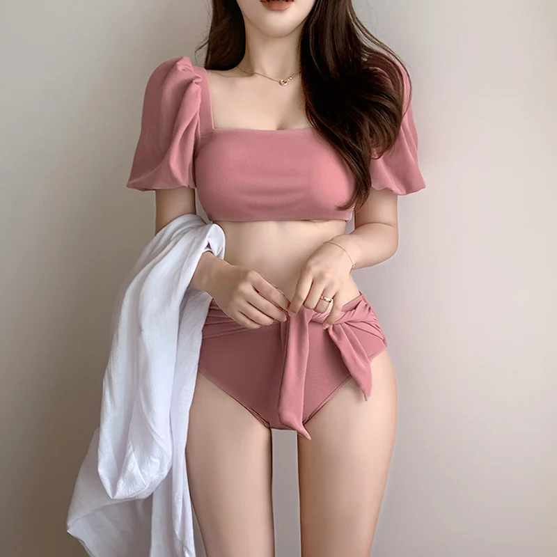LDYRWQY 2021 Корейская версия нового розового бикини с пышными рука...