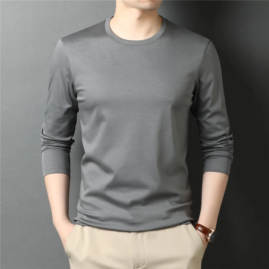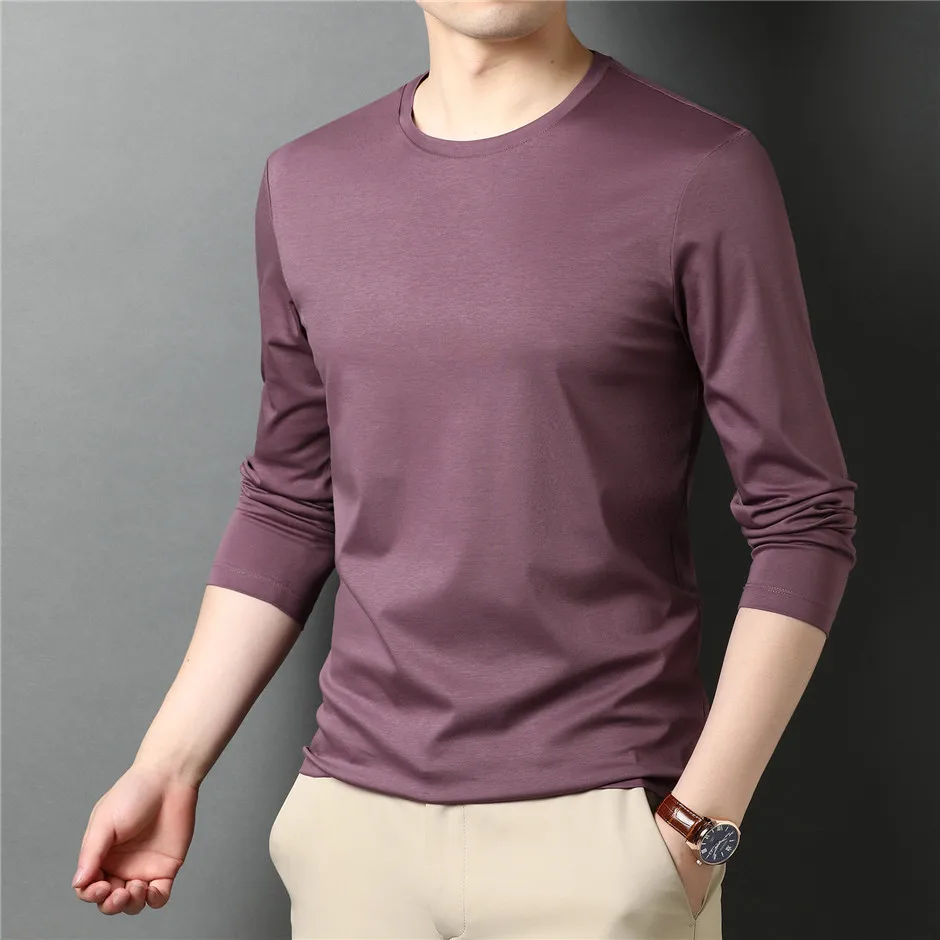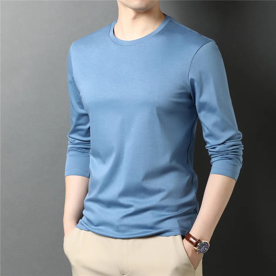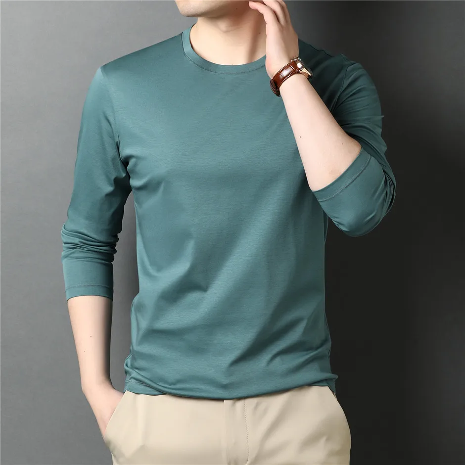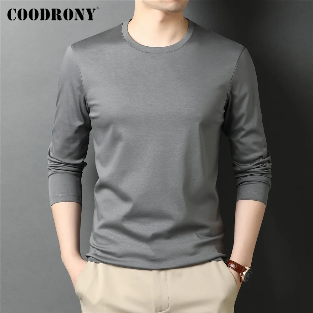 Бренд COODRONY, весна-осень, высококачественные классические повседневные однотонные 100% мерсеризованные хлопковые футболка с длинным рукавом для мужчин с круглым вырезом C5066