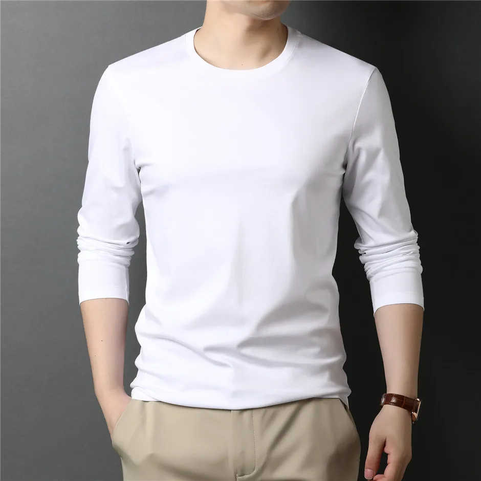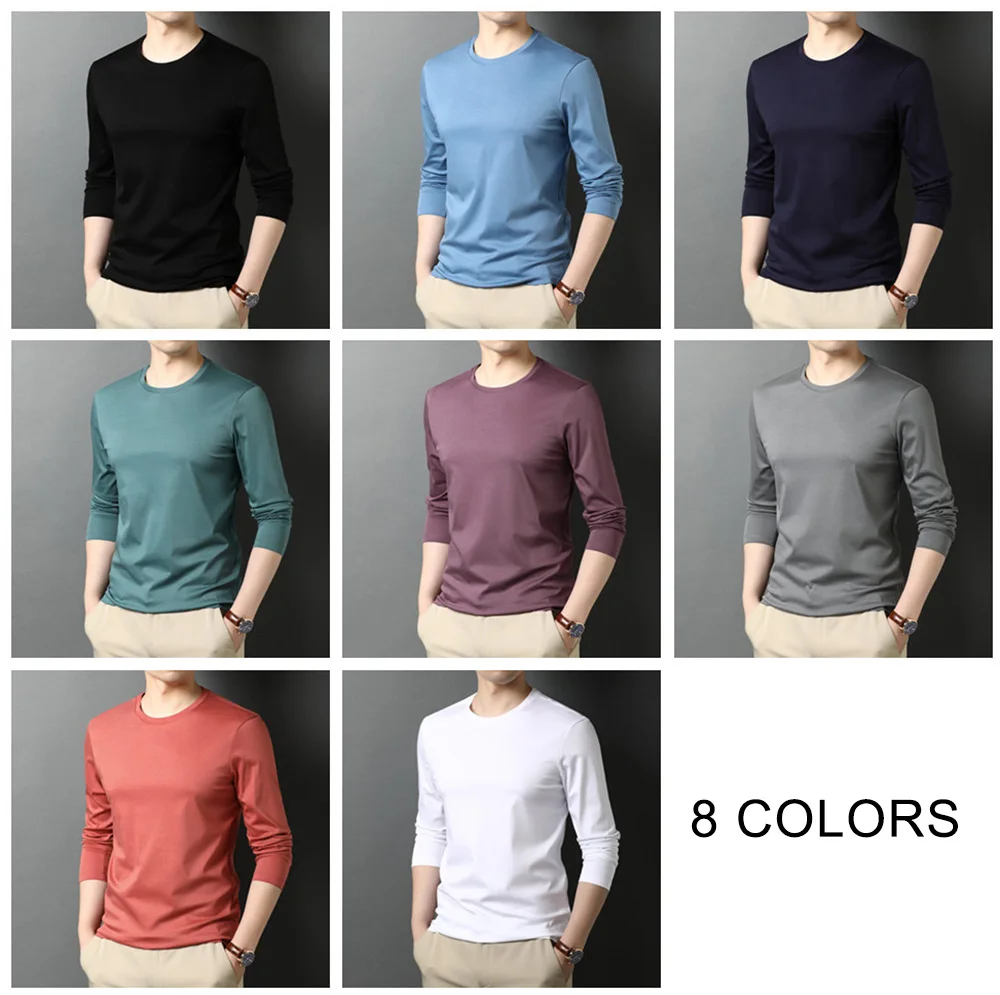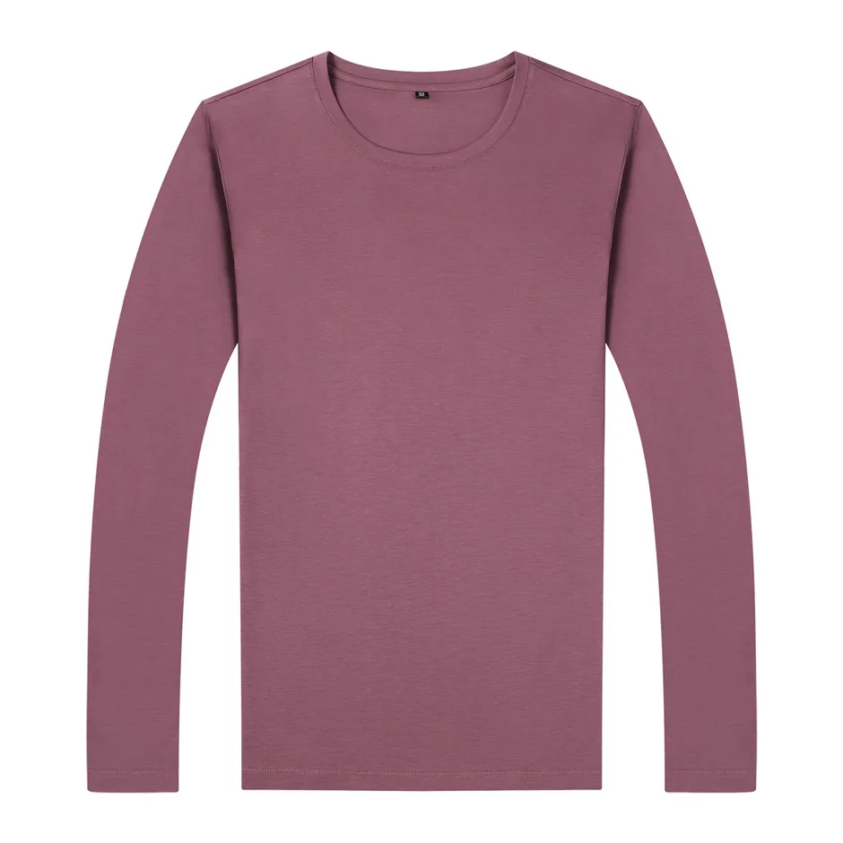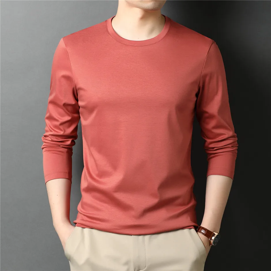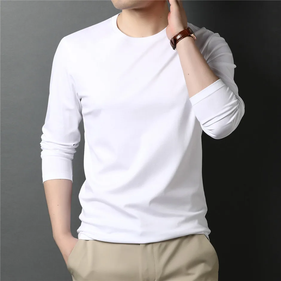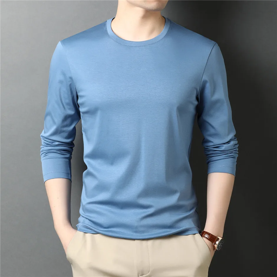 Бренд COODRONY, весна-осень, высококачественные классические повседневные однотонные 100% мерсеризованные хлопковые футболка с длинным рукавом для мужчин с круглым вырезом C5066