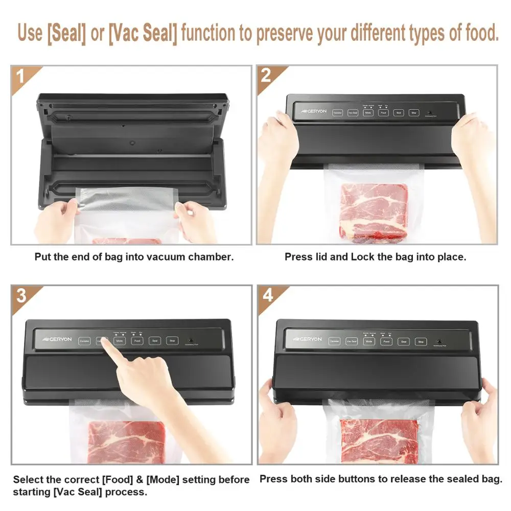 GERYON автоматический вакуумный упаковщик машина с пищевой вакуумной сумкой 7,8x11,8 дюймов 50 графов идеально подходит для экономии еды