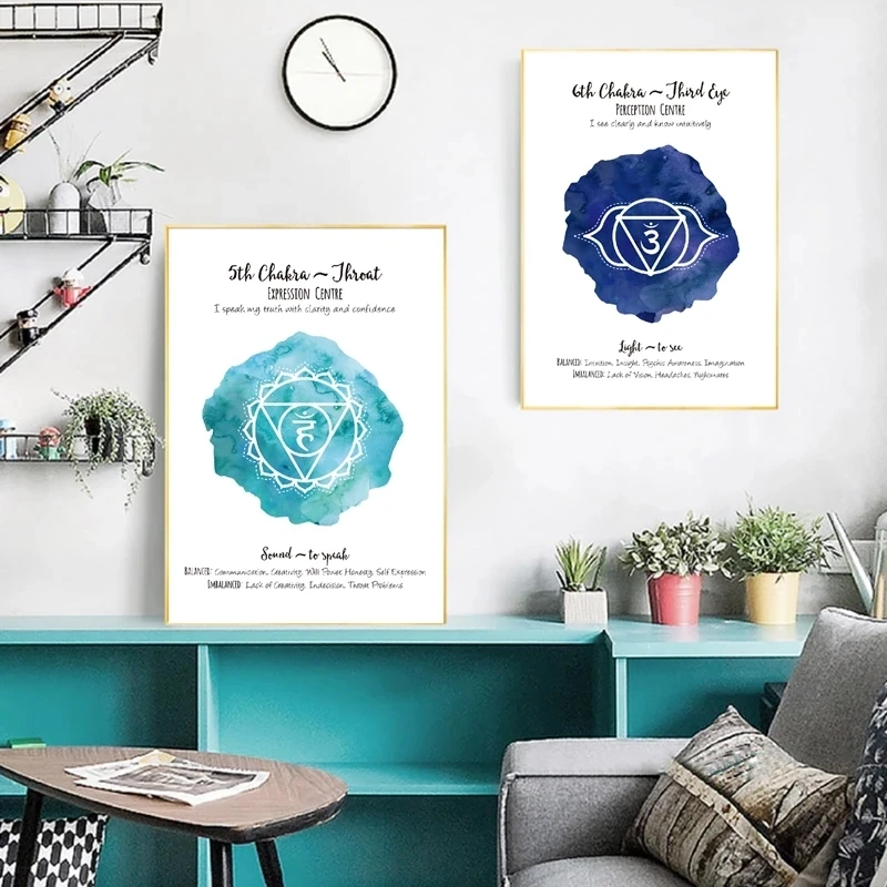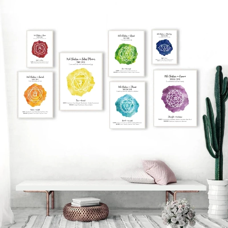 7 Чакр Йога плакат для медитации настенный художественный принт здоровья АУМ символ йоги Ом акварель Арт холст картины украшение дома Куадрос