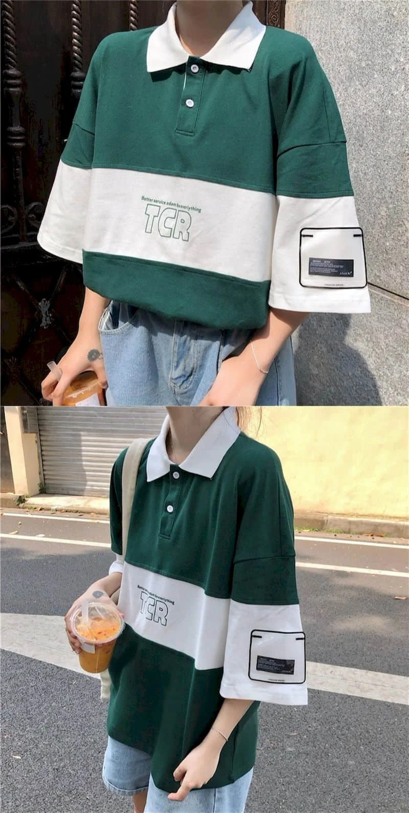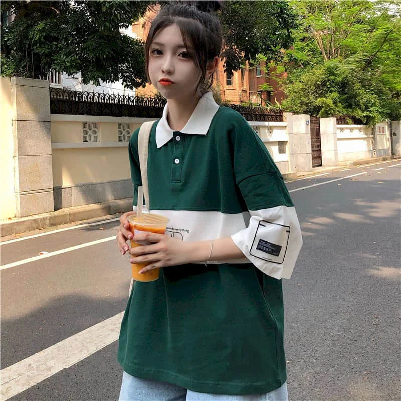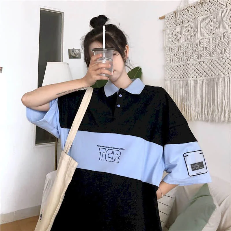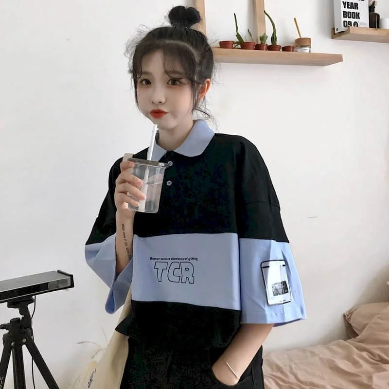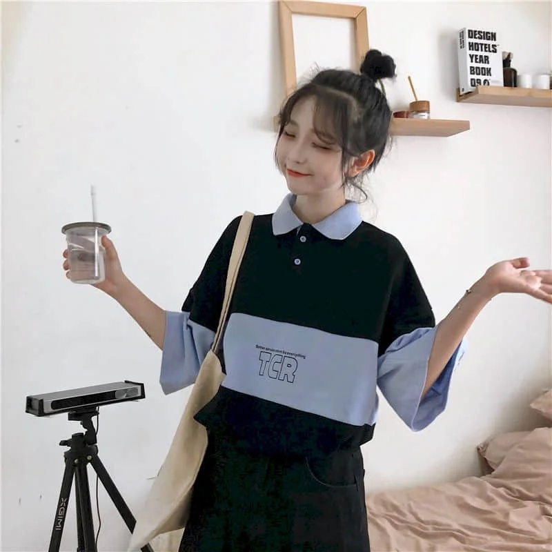 Летний костюм для мужчин и женщин, Корейская трендовая рубашка-поло...