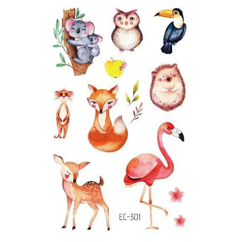 Детские Мультяшные тату-наклейки, милые маленькие животные, водонепроницаемые Временные татуировки для детей, имитация флэш-татуировки, черепаха, лиса, олень, наклейки