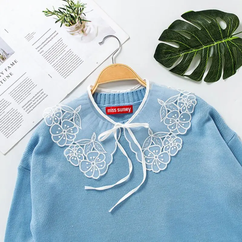 Шифоновая кружевная имитация воротника в европейском стиле для женщин и девочек, двухслойный декоративный чокер с цветочной вышивкой, блузка, шаль, галстук-бабочка