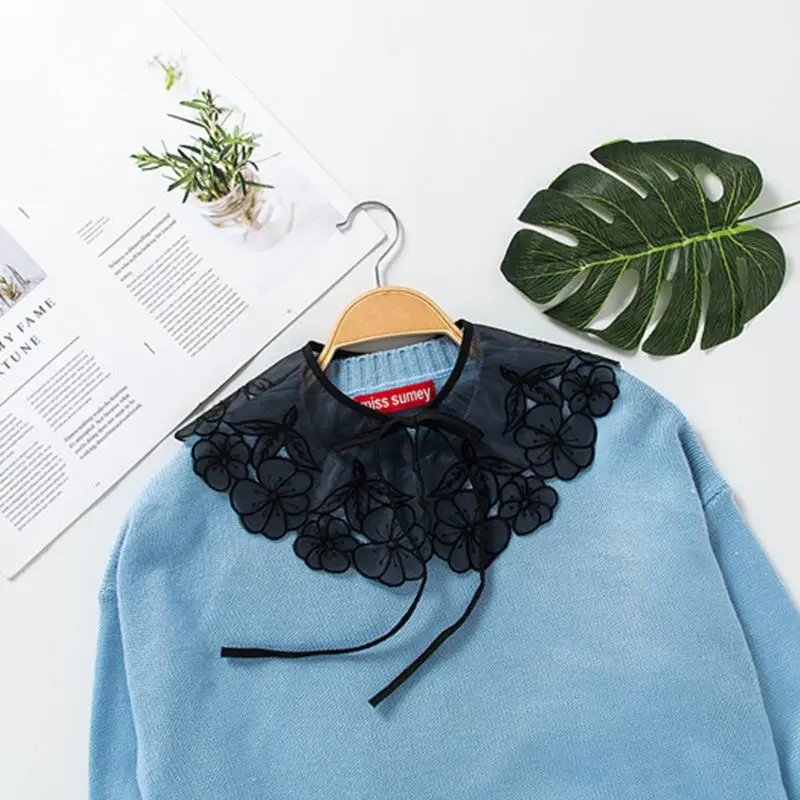 Накладной воротник из шифона, с цветочной вышивкой, в европейском с...