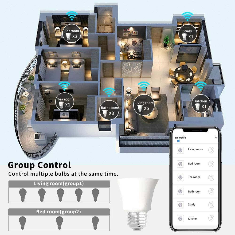 Умная Светодиодная лампа E27, удобное управление через приложение, совместима с Alexa Google Assistant, с голосовым управлением, с регулируемой яркостью, Wi-Fi, 5-20 Вт