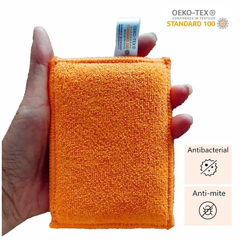 * Очень подходит для портативного размера* Антибактериальная губка с внутренним сердечником* Фирменная губка для чистки, подходит для чистки кружек (пятна от кофе, пятна от чая, легко удаляется), посуды и т. д.* Двусторонний материал, одна сторона-мягкая микрофибра, другая-матовая* Очень прочный и долгий срок службы* Розничная цена товаров для дома: 9 долларов США 5 шт.