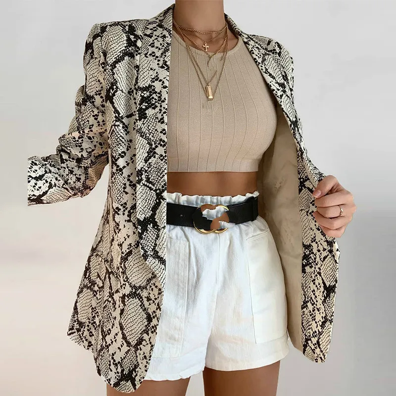 2022 офисные женские белые блейзеры женские осенне-зимние пальто с длинными рукавами женские леопардовые куртки на одной пуговице Женский блейзер с карманами