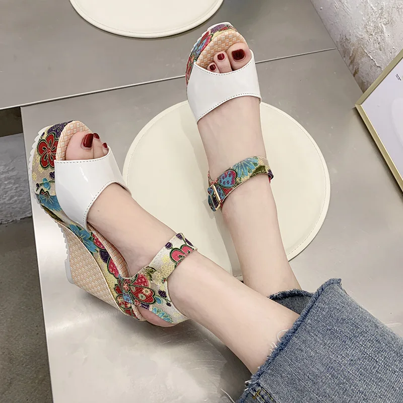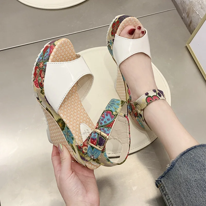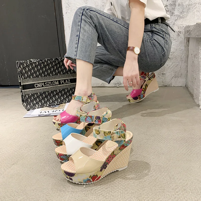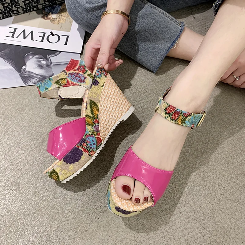 Женские пляжные сандалии для отдыха, небольшие босоножки на толстой подошве, классические сандалии в стиле ретро, для отдыха, пляжа, на высоком каблуке