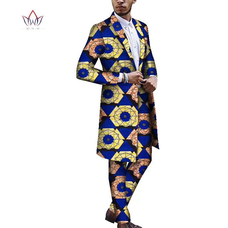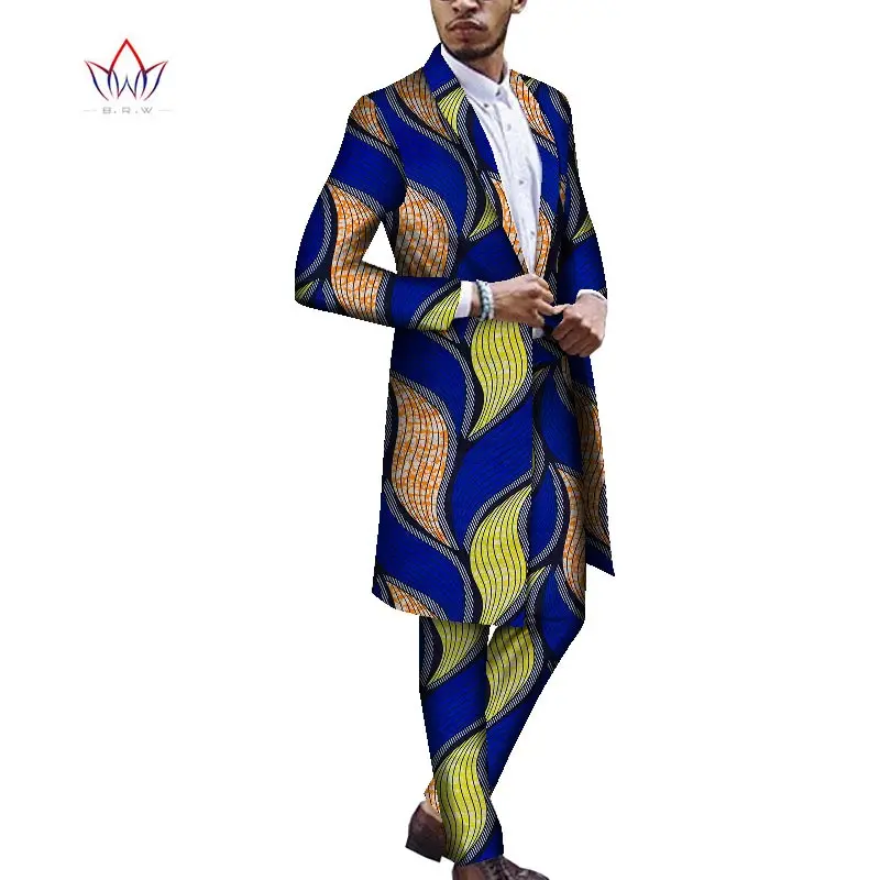 Африканский Анкара Дашики костюм для мужчин BRW по индивидуальному заказу Bazin Richi длинная куртка на одной пуговице + длинные брюки 2 шт. WYN1167