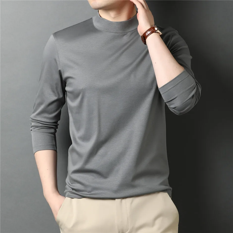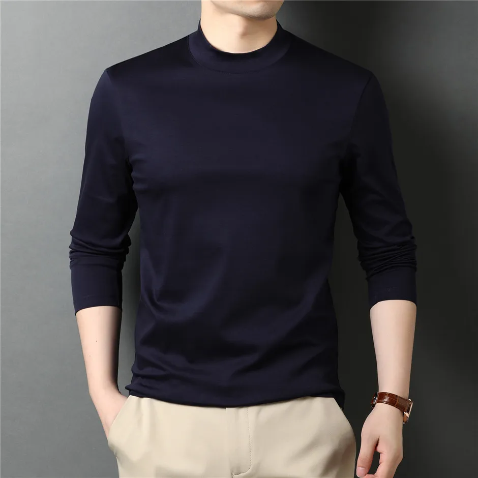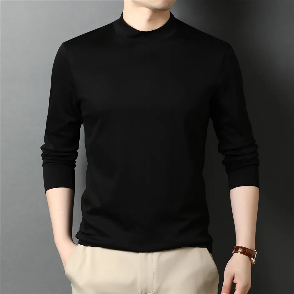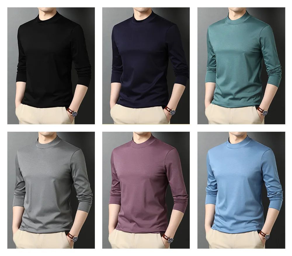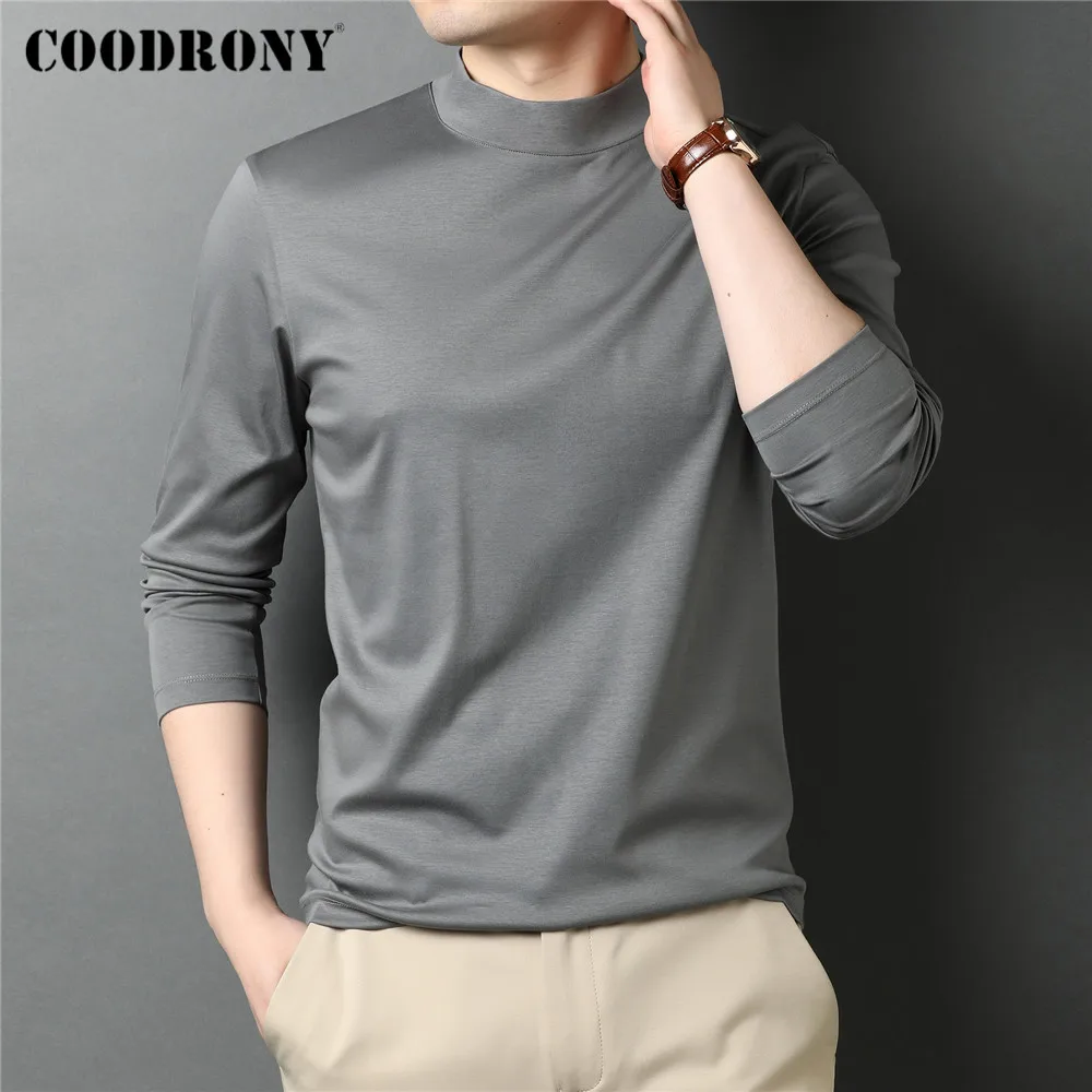 Водолазка COODRONY C5068, Классическая Повседневная однотонная водолазка из мерсеризованного хлопка, футболка с длинным рукавом для мужчин, весна-осень
