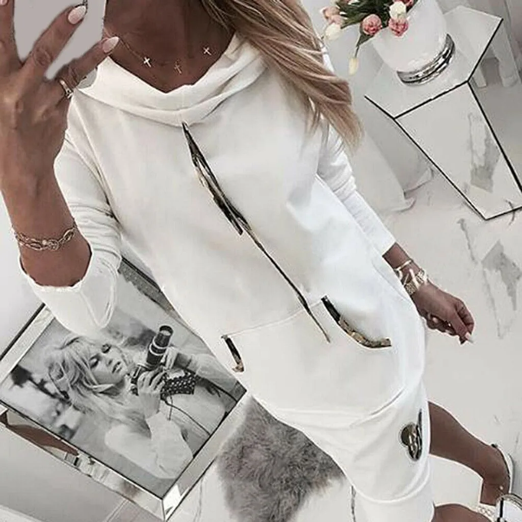 Зимнее Платье, Женский однотонный джемпер с длинным рукавом, пуловер, свитшот, худи, платья с капюшоном, Vestido De Mujer, Женское Платье