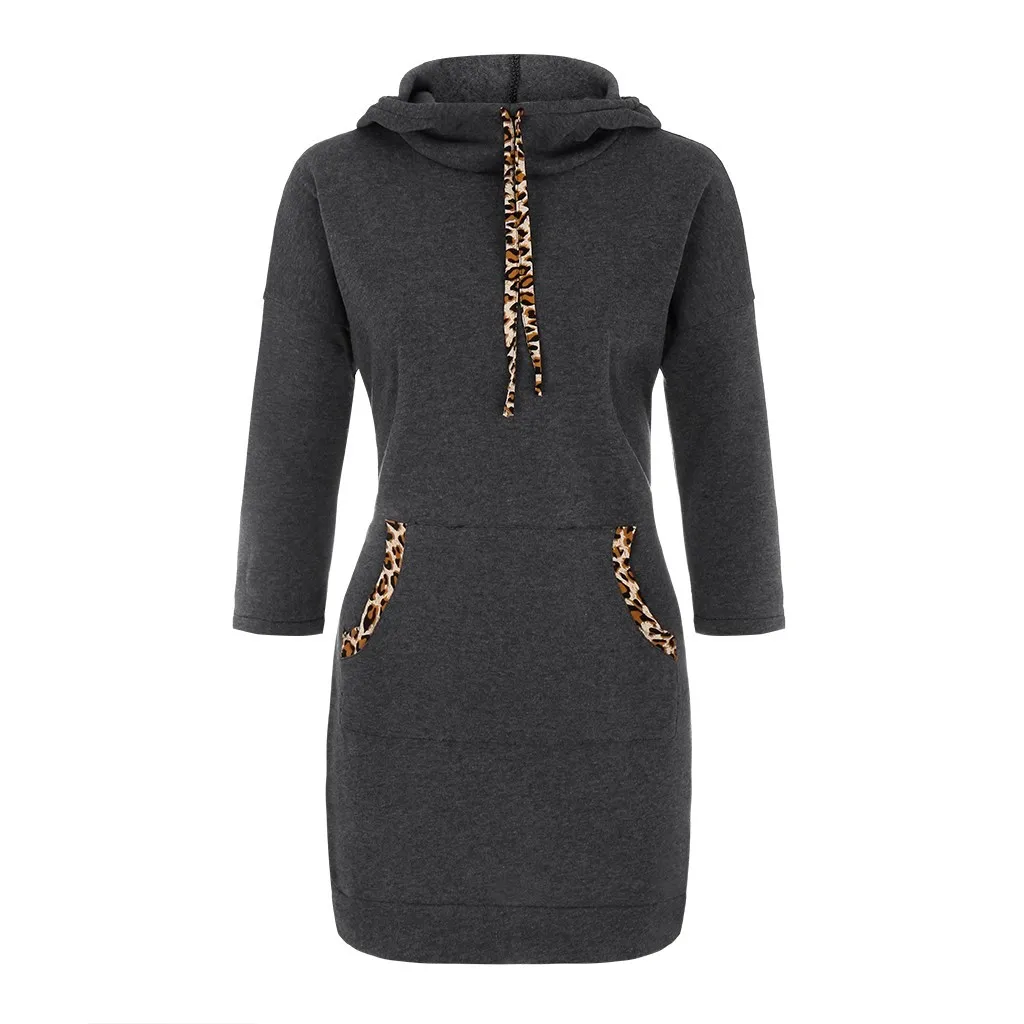 Женский однотонный джемпер с длинным рукавом, толстовка с капюшоном, платье