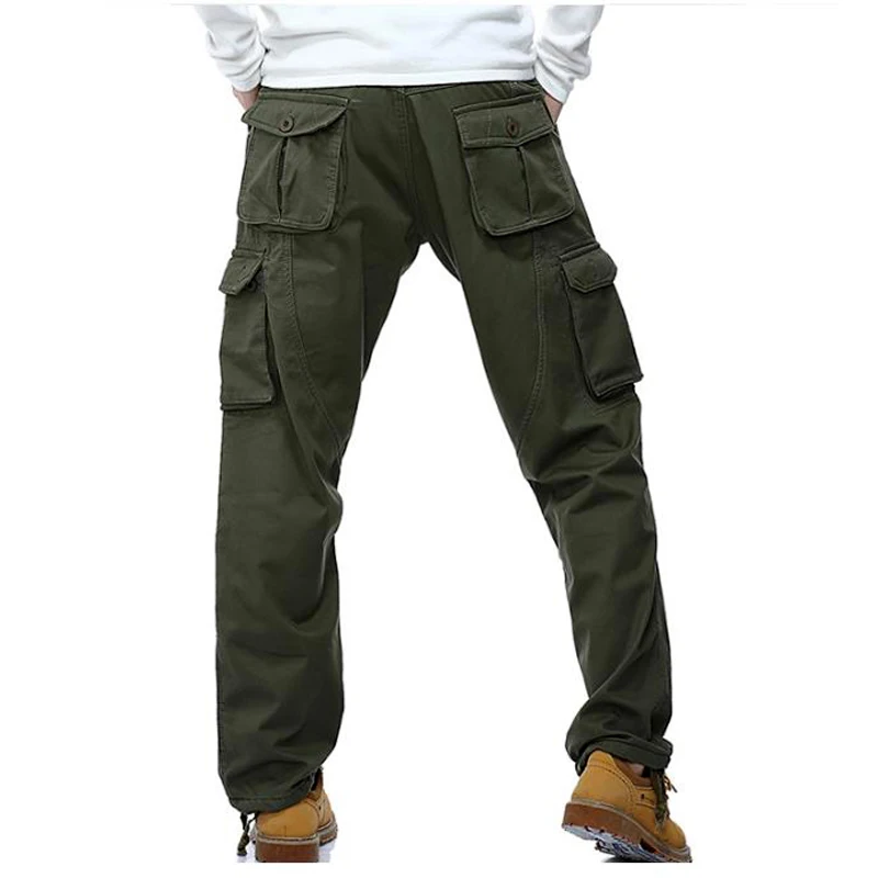 Зимние тактические штаны для мужчин, флисовые теплые хлопковые брюки на молнии, свободные брюки-карго, мужские повседневные брюки размера плюс, утепленные рабочие брюки для бега