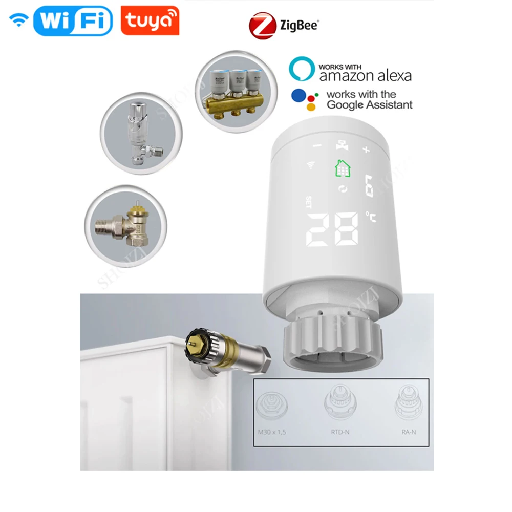 Клапан термостата Zigbee с Wi-Fi, программируемый клапан радиатора ...