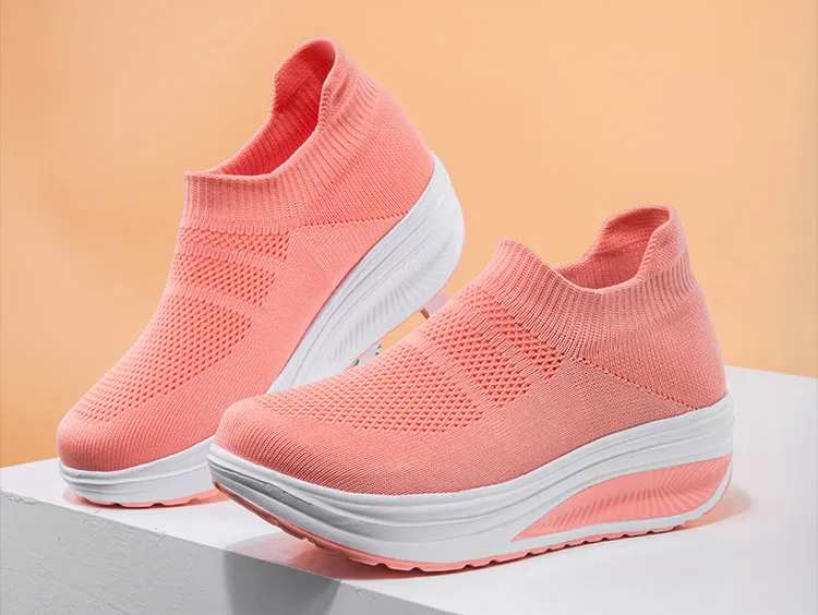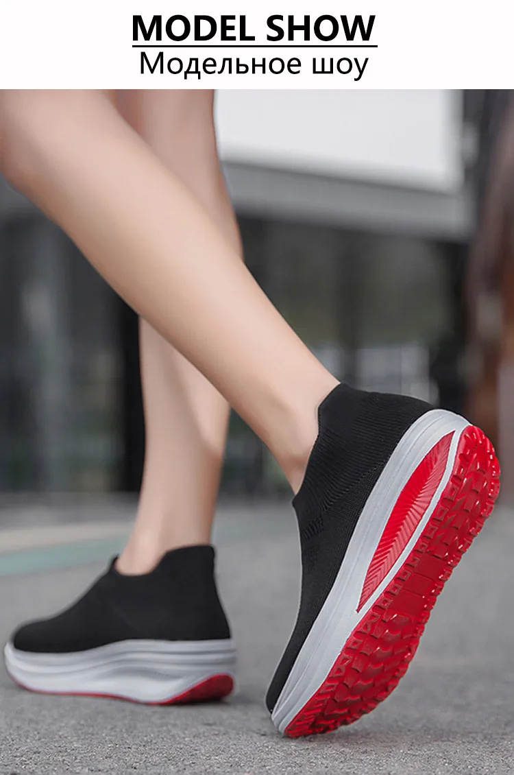 Кроссовки женские сетчатые на танкетке, дышащие, повседневная обувь на платформе, большие размеры, 2022