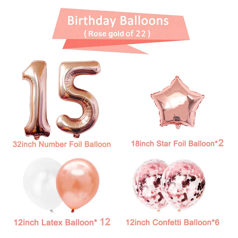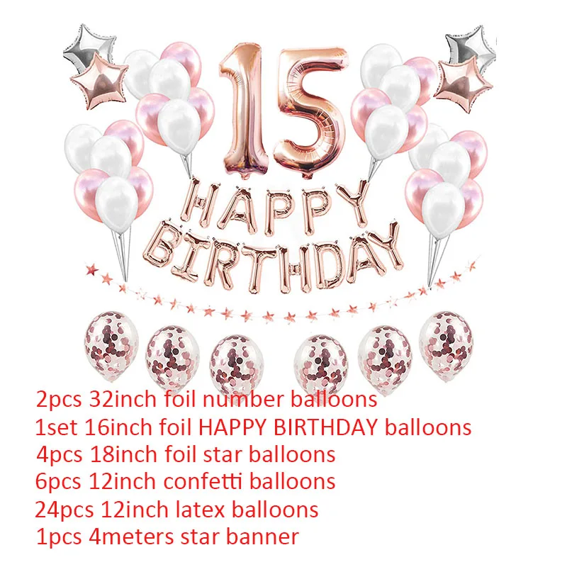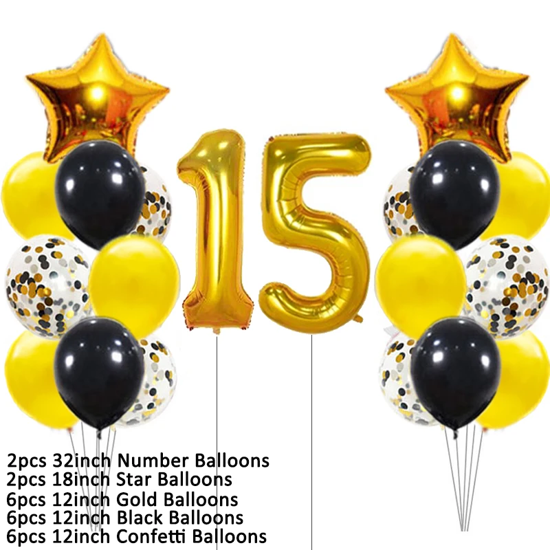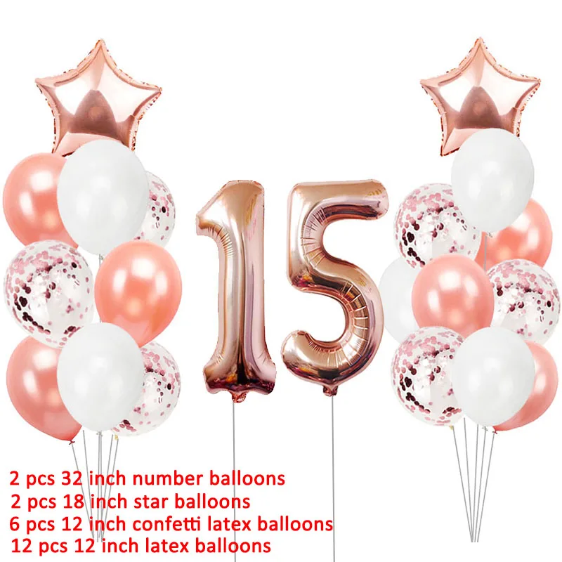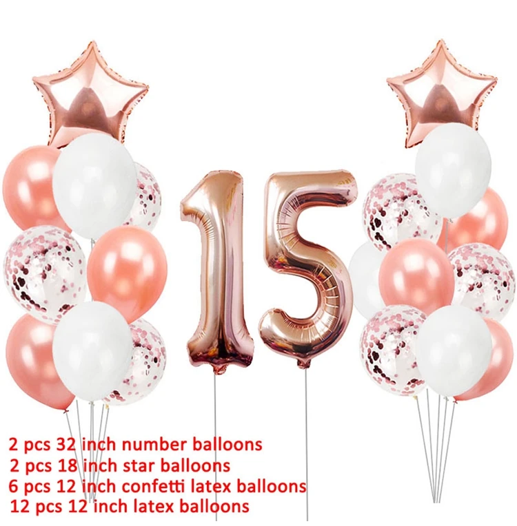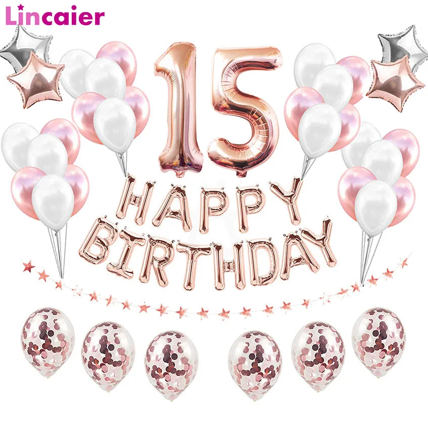 Воздушные шары с номером 15, для дня рождения, 15, для мальчиков и девочек, украшения для пятнадцвечерние, 51, 51 год, розовое золото, черные, принадлежности для годовщины
