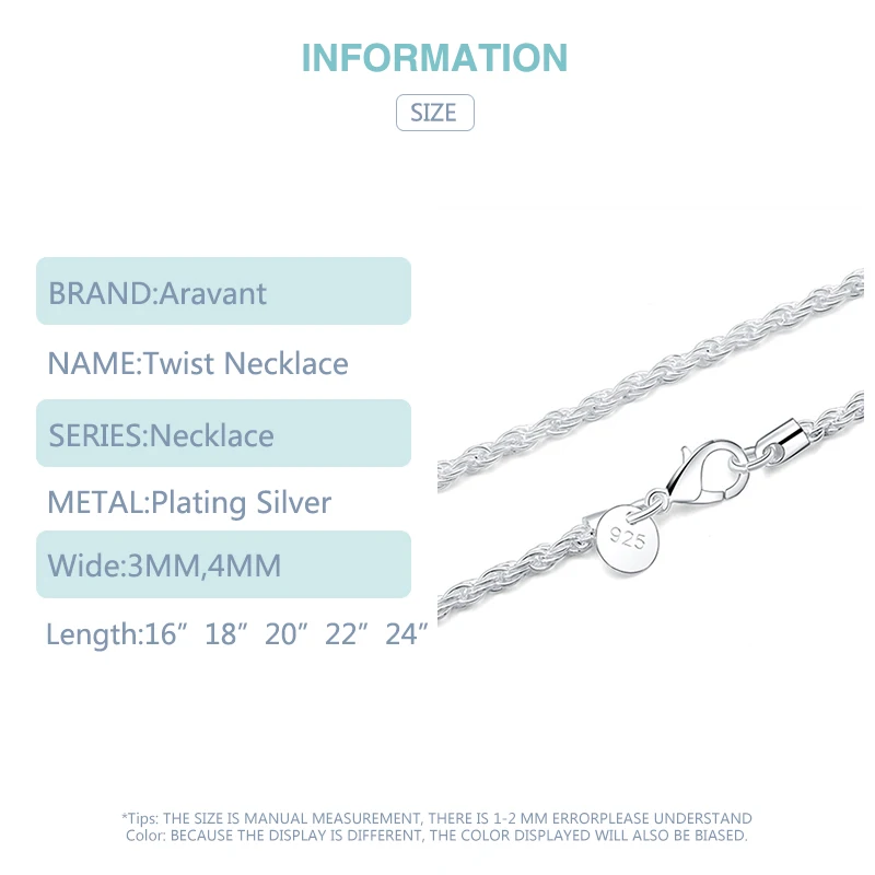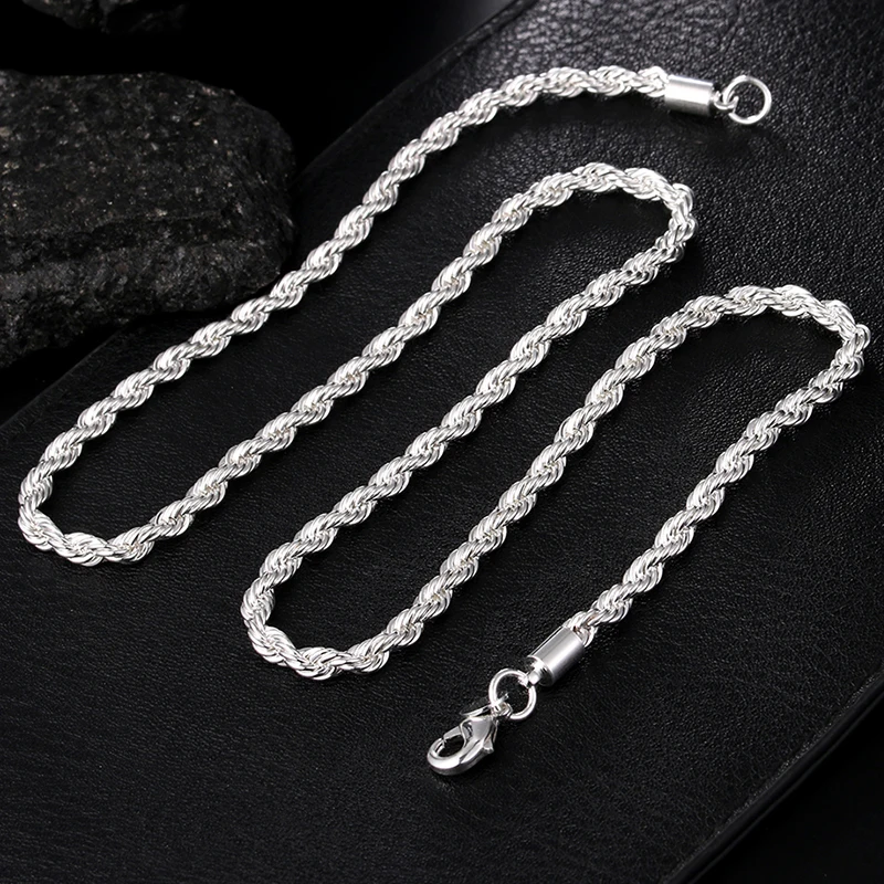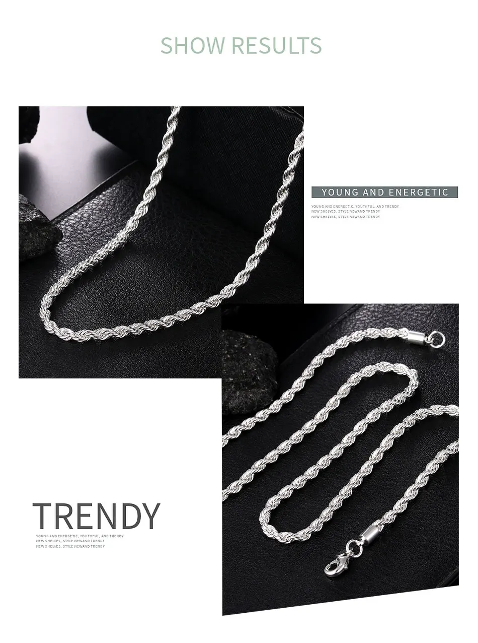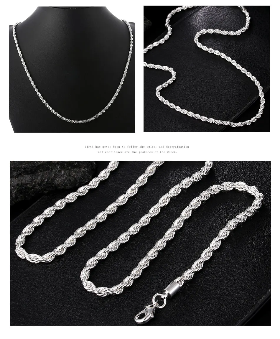Плетеная цепочка из серебра 925 пробы 3 мм4 мм для мужчин и женщин, модные украшения