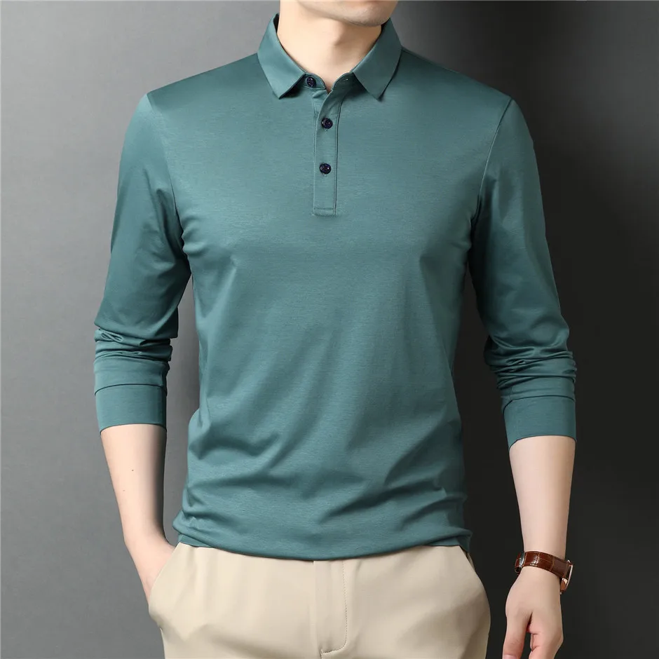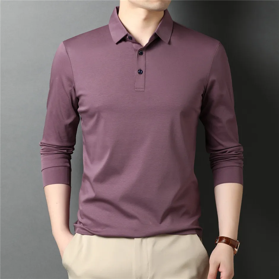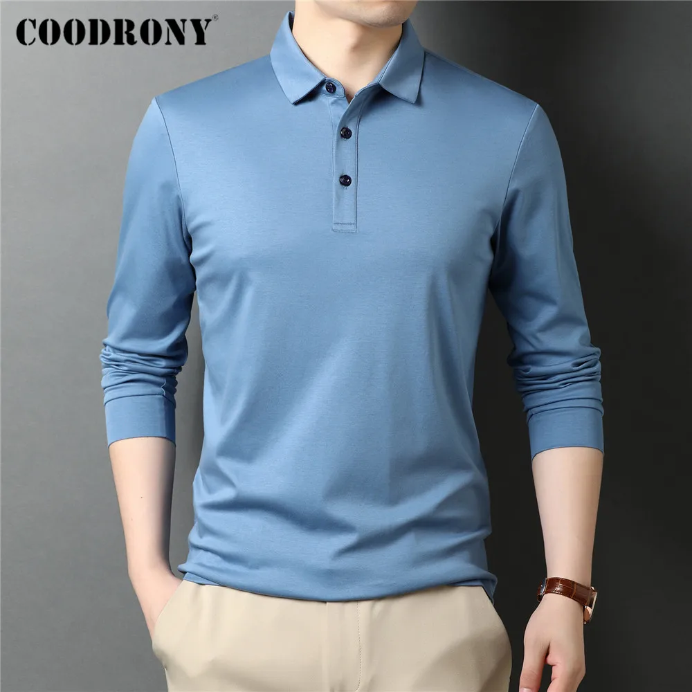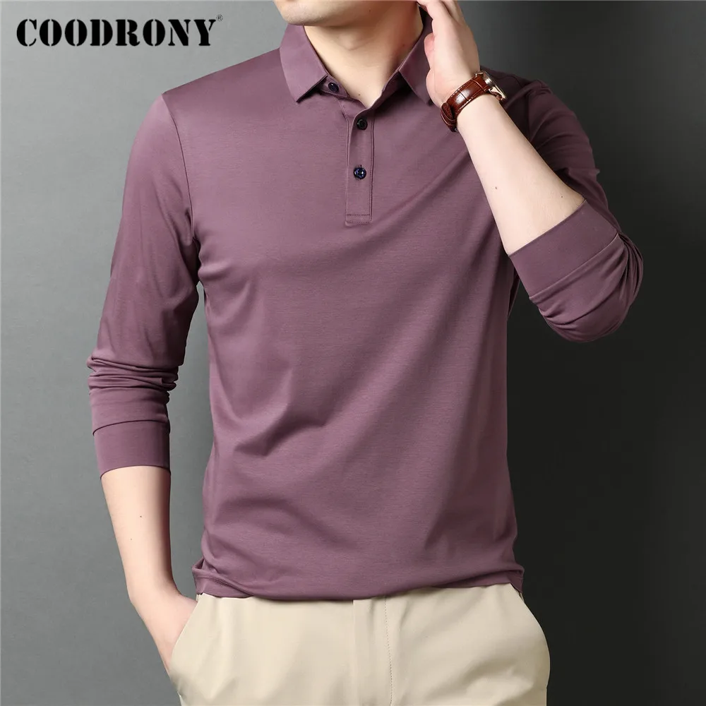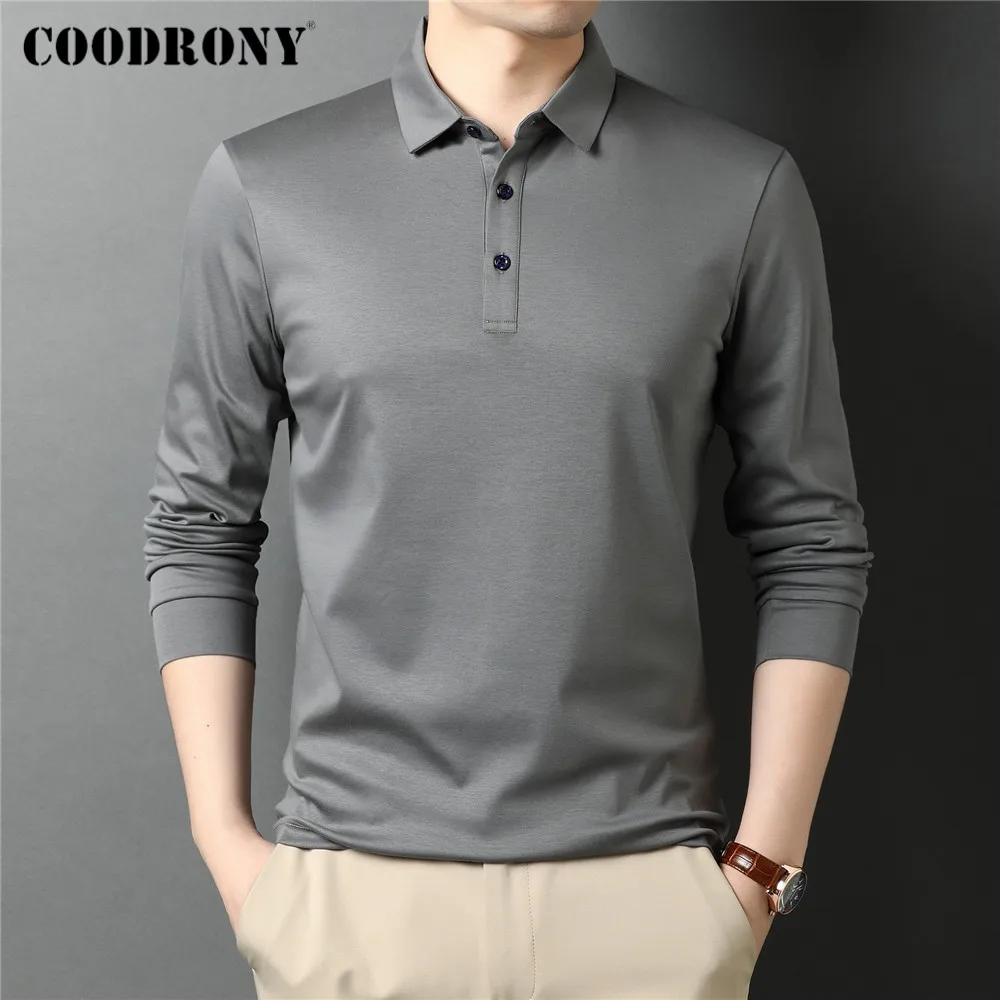 Рубашка-поло COODRONY C5069 Мужская, Классическая Повседневная однотонная, из мерсеризованного хлопка, с длинными рукавами, Весна-Осень 100%