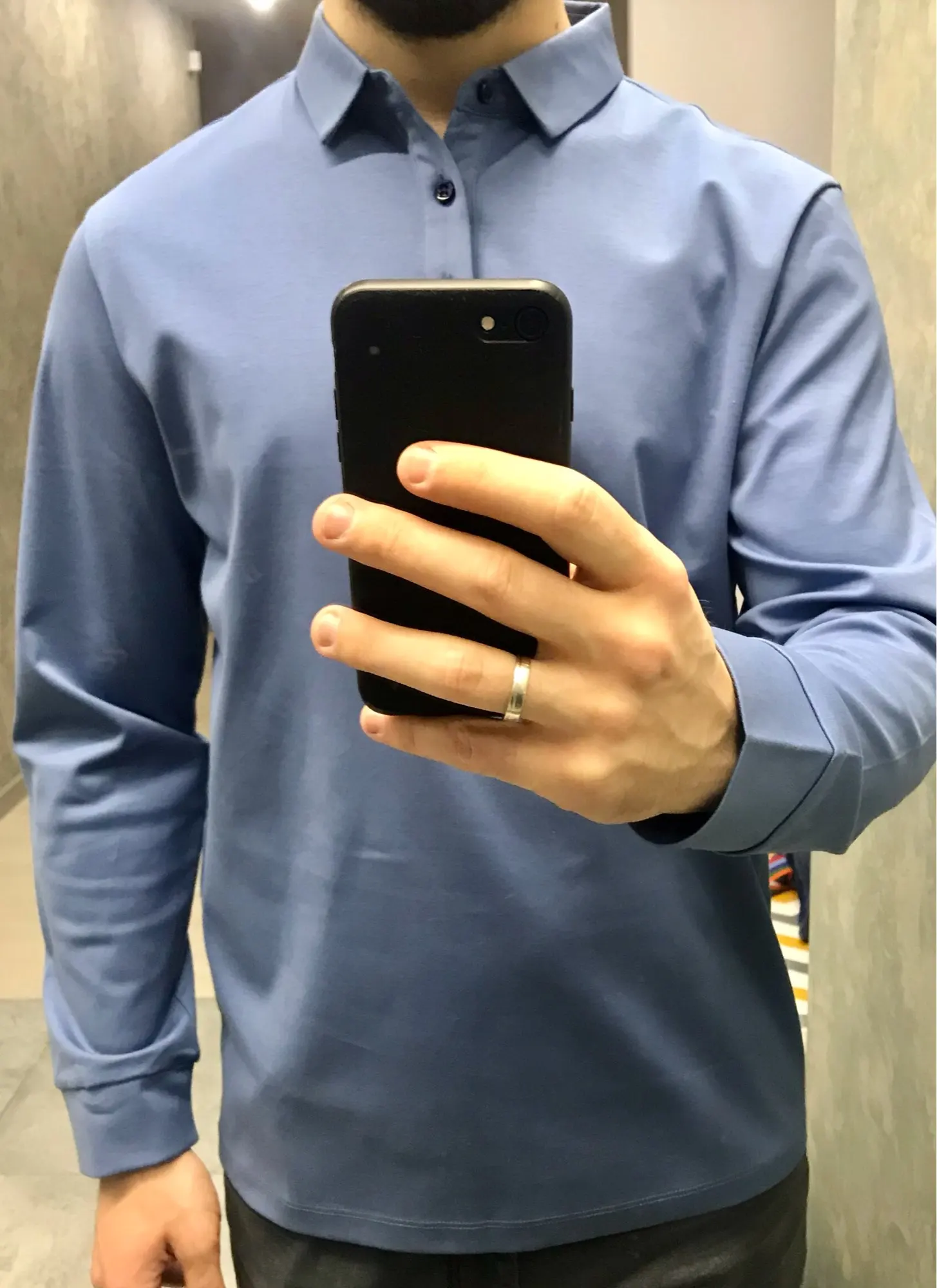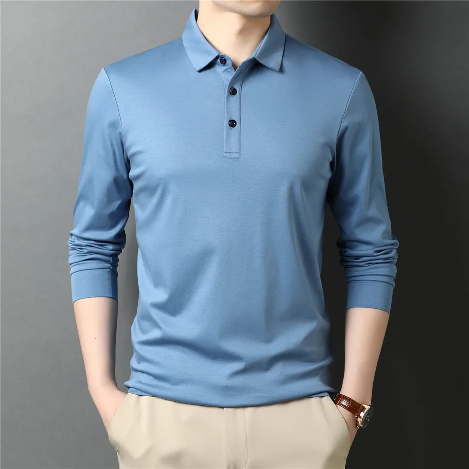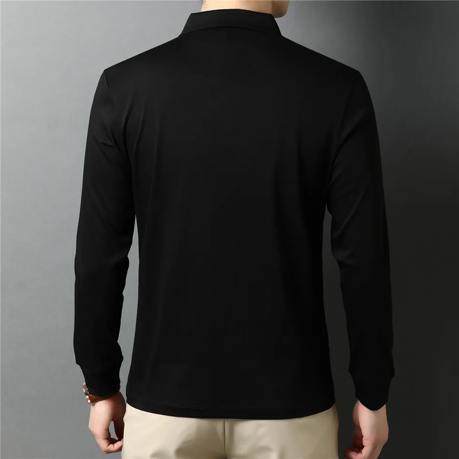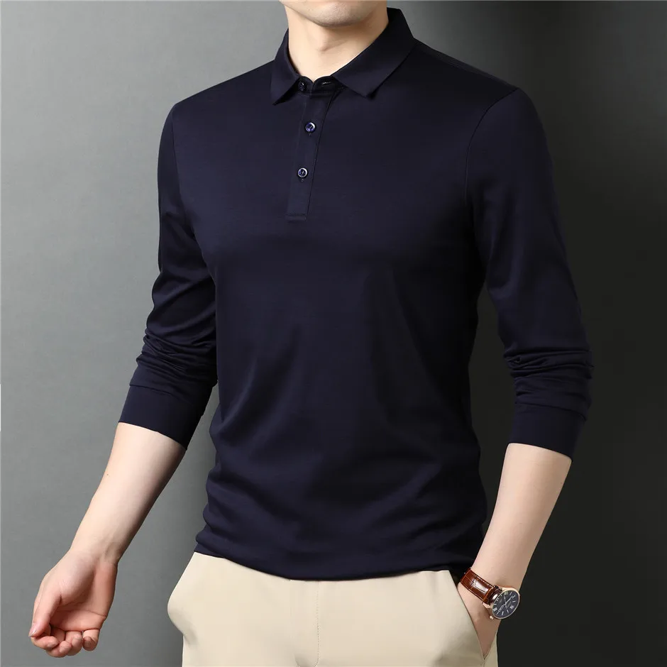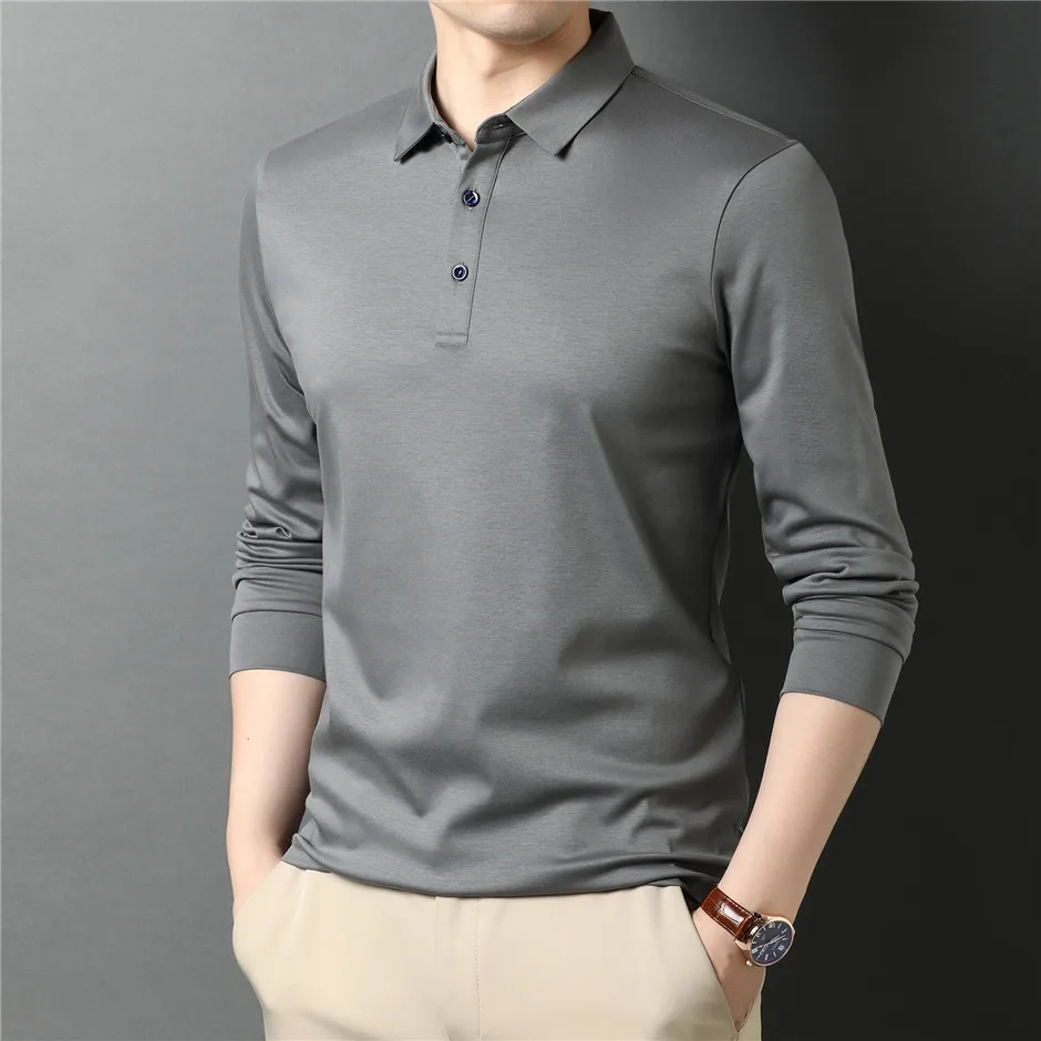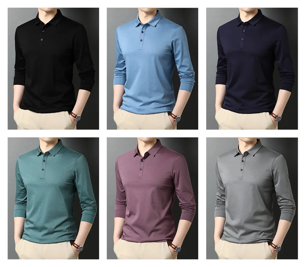 Рубашка-поло COODRONY C5069 Мужская, Классическая Повседневная однотонная, из мерсеризованного хлопка, с длинными рукавами, Весна-Осень 100%