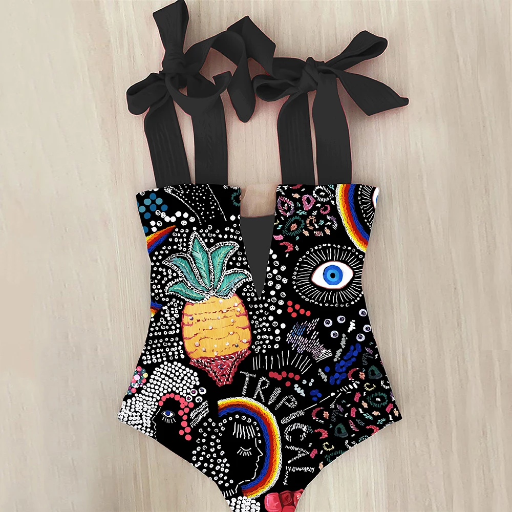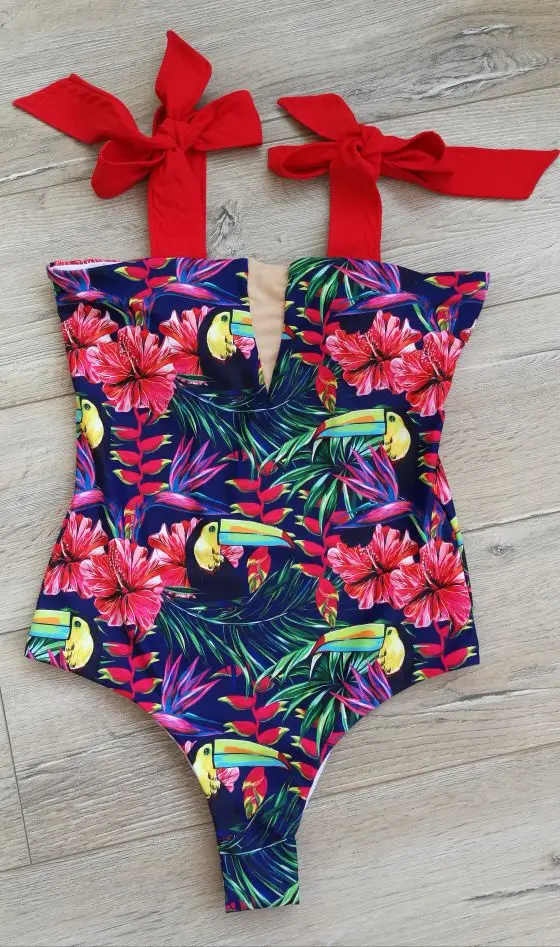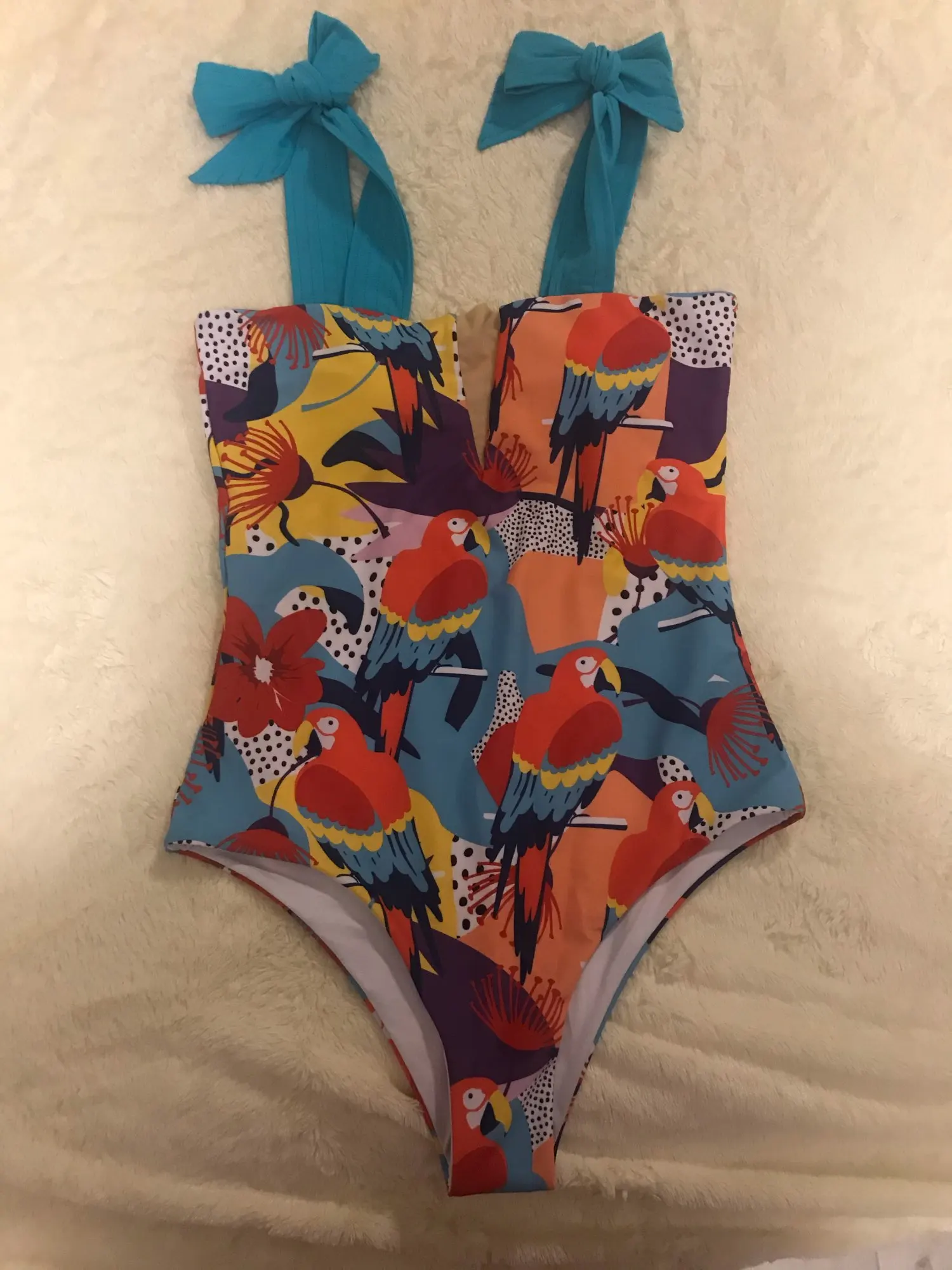 Очень красивый цельный купальник, смотрится великолепно, ткань купальные очень хорошо тянется, завязывается на бантики бретельки в этом купальнике, принт очень яркий, на мой рост 175 см купальник сел отлично, рекомендую к покупке)