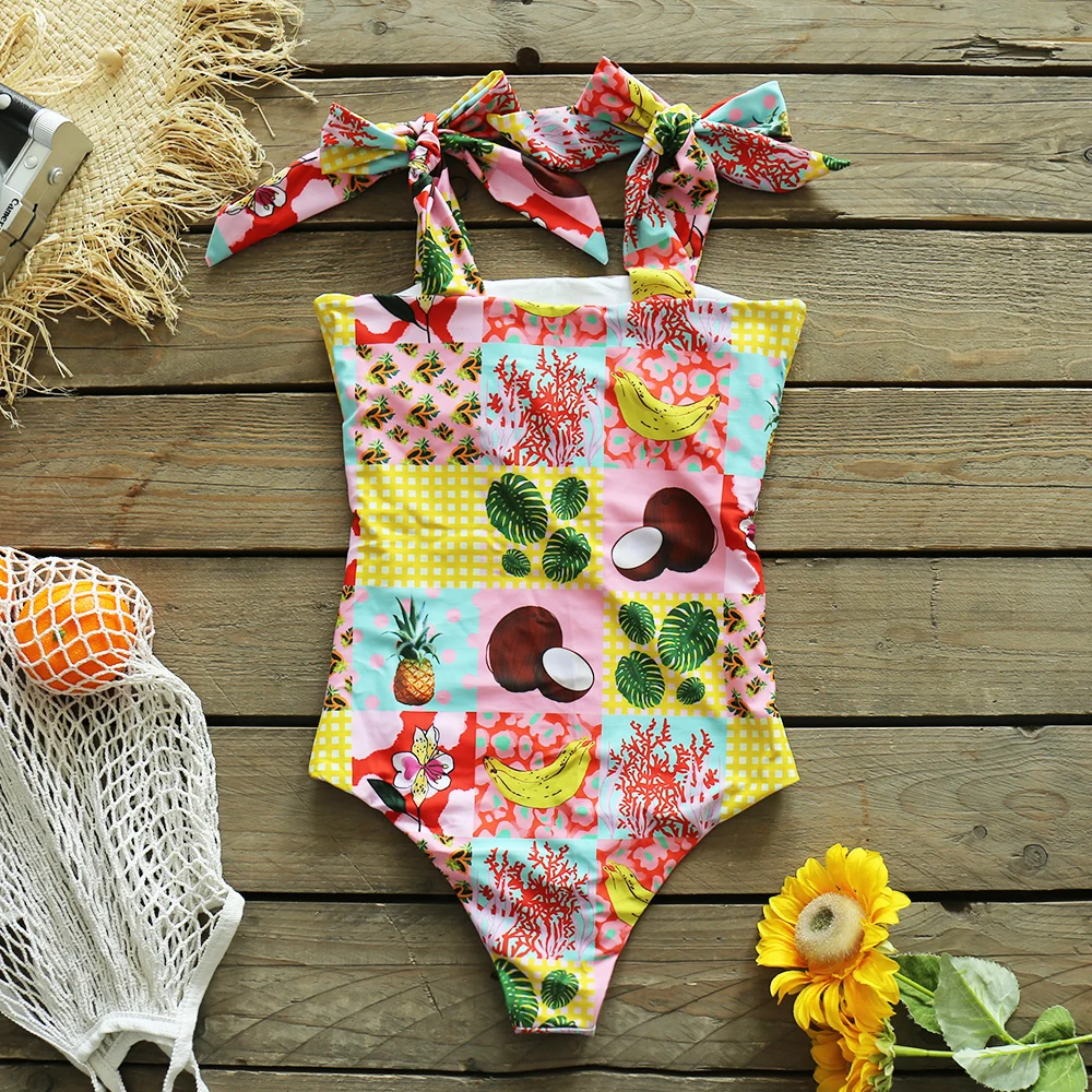 Цельный купальный костюм, новинка 2022, милая одежда для плавания, женская одежда для плавания с бантом, купальный костюм с вырезами, монокини для плавания с перекрестной спиной