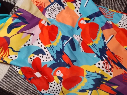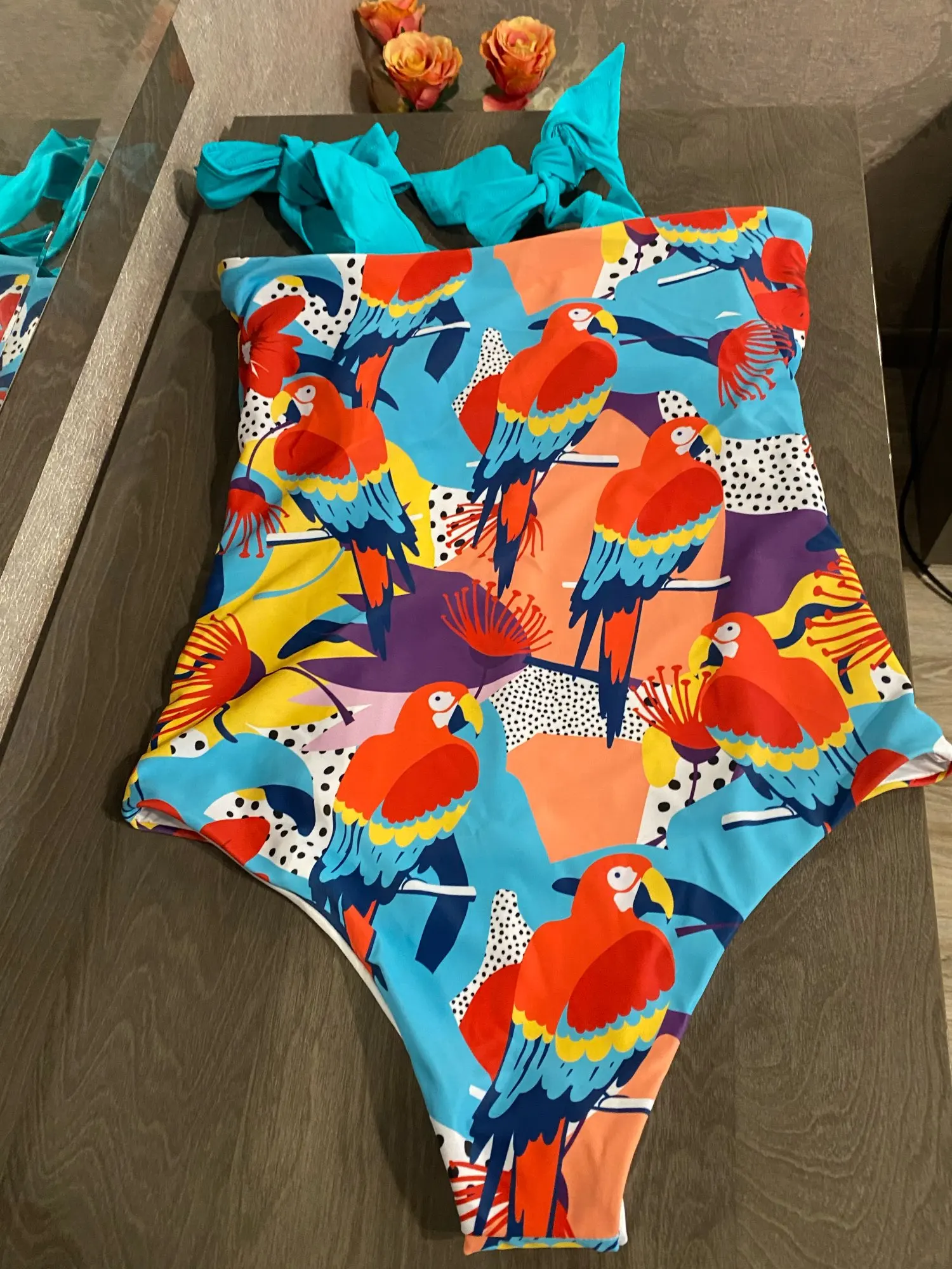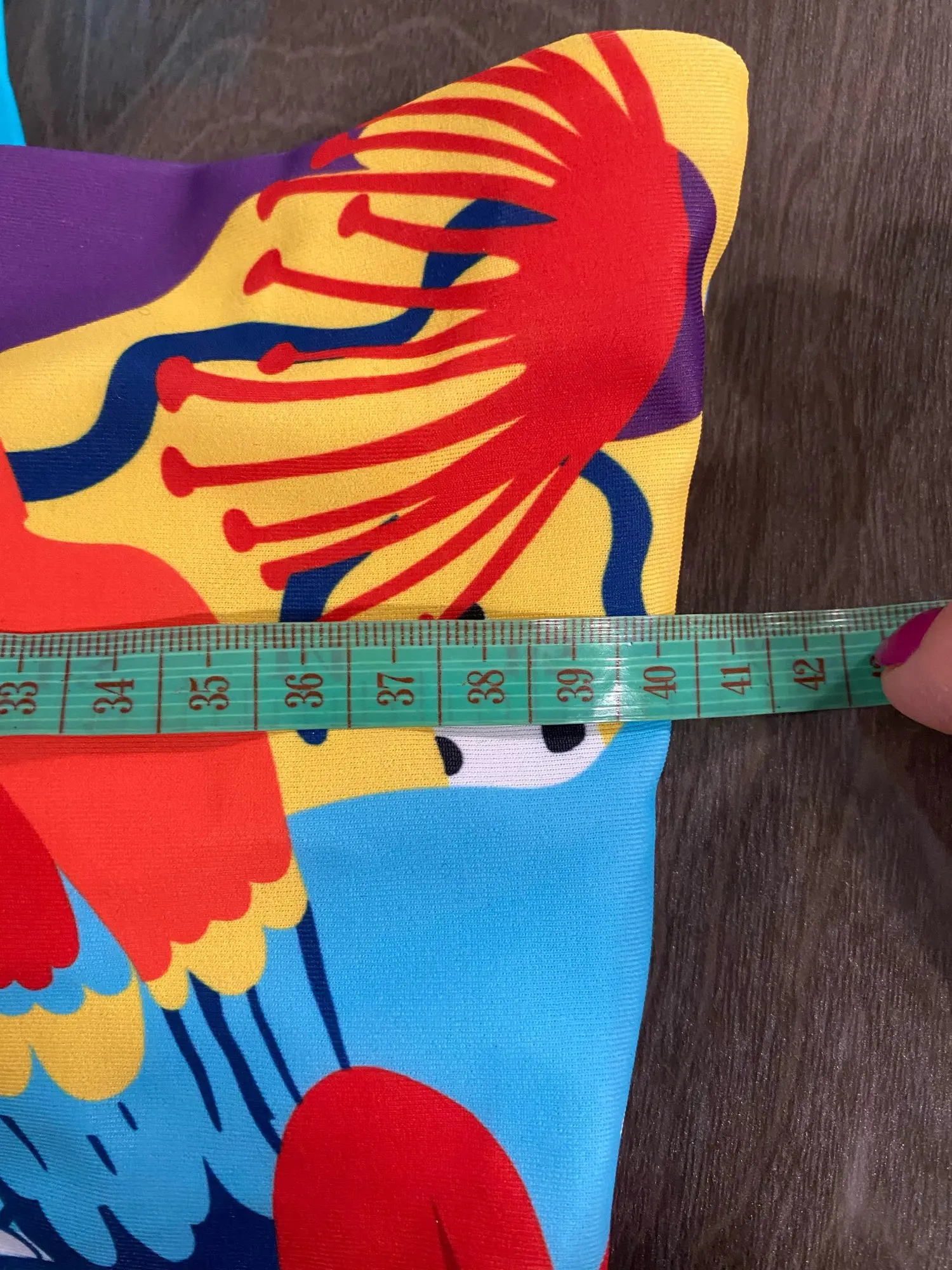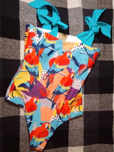 Яркий купальник ❤️ Принт-попугаи Материал-85% полиэстер и 15% спандекс Размер взяла Л-на рост 170 см бедра 96 см,бюст 89 см сел четко по размеру и по росту. Принт с обеих сторон. Есть чашечки, но их можно снять. Хорошо прошито внутри и снаружи. Яркий купальник и стильный, приятный к телу. Доставка 7 дней Новой почтой в Украину.Рекомендую!