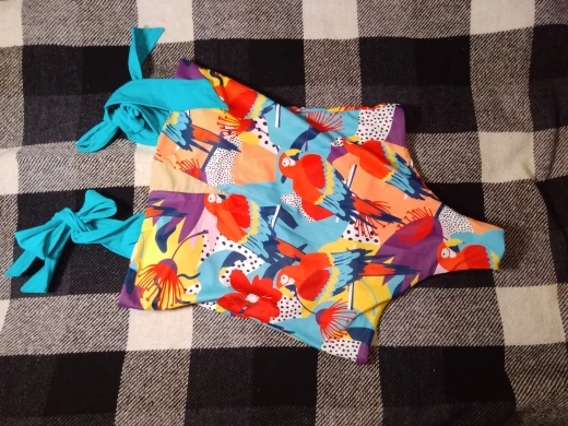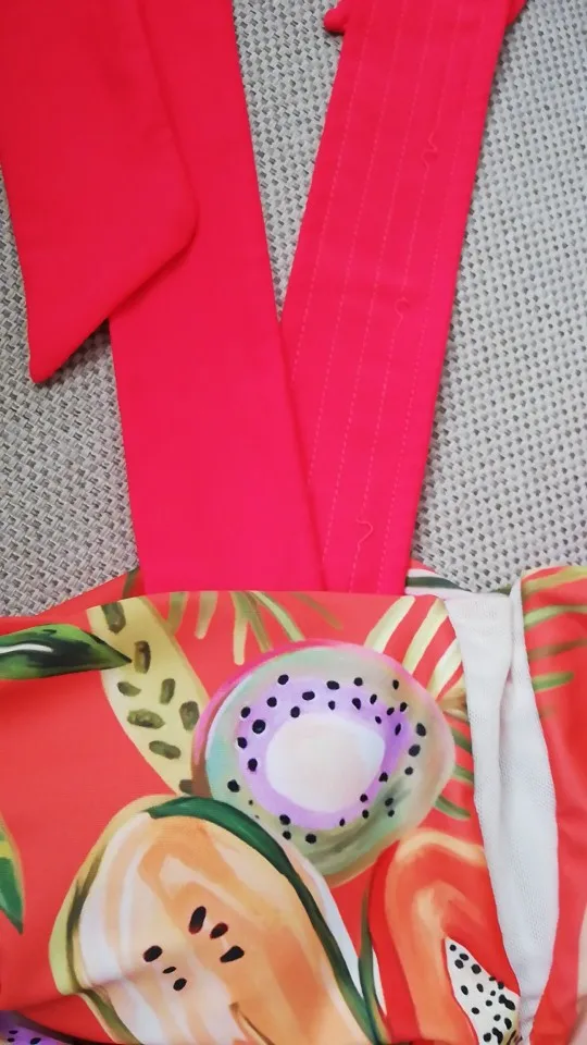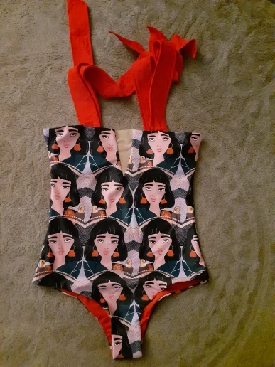 Купальник хороший, цвет яркий, сидит хорошо, НО!!! Есть небольшой нюанс. Завязки прострочены обычным швом и, стоит их натянуть, нитки лопаются. В ателье сказали, что нет смысла в прострочке, нитки рваться будут в любом случае. Проще просто её убрать, что я и сделала). Кроме этого в купальнике мне все нравится.