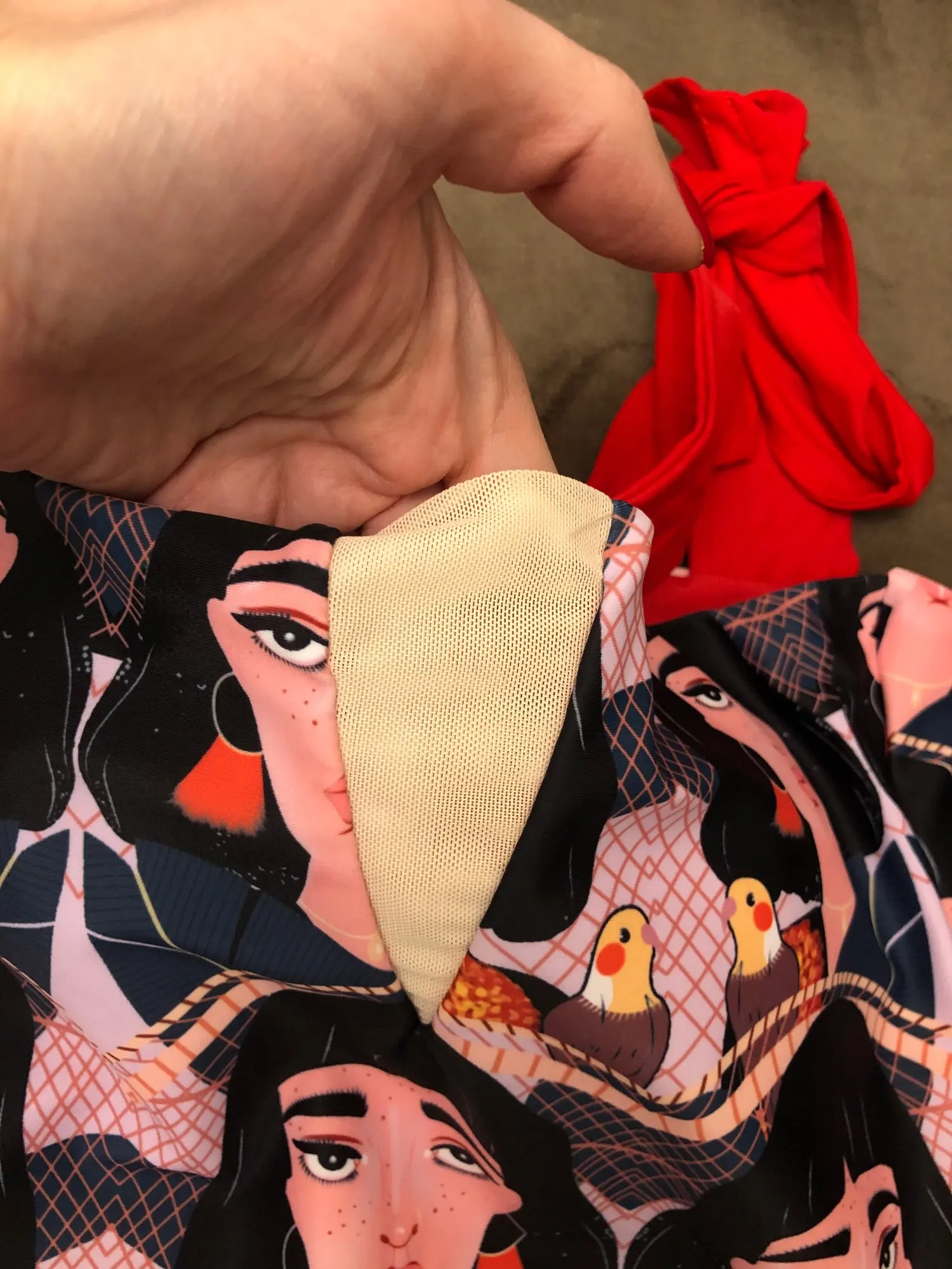 Очень интересный купальник. Принт безумно понравился. Если бы увидела его вживую , подумала, что он стоит гораздо дороже На мои параметры 84-66-93 и рост 172 см подошёл отлично в размере S. Но первый размер груди визуально приплющивает . Рекомендую его на второй размер груди Есть чашечки, при желании можно вынуть. Завязки плотные, достаточно тяжело их красиво завязать Доставка в Петербург меньше месяца