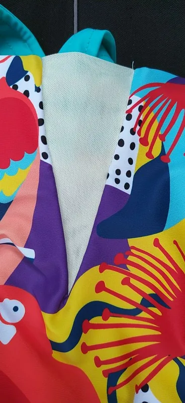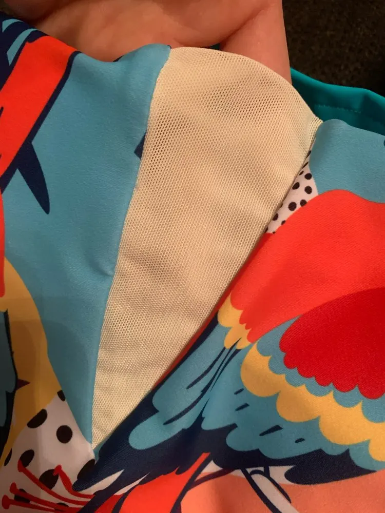 very cute, colorful and super fast delivery. I only took one star out because the lining sticks out of the swimsuit in some parts...