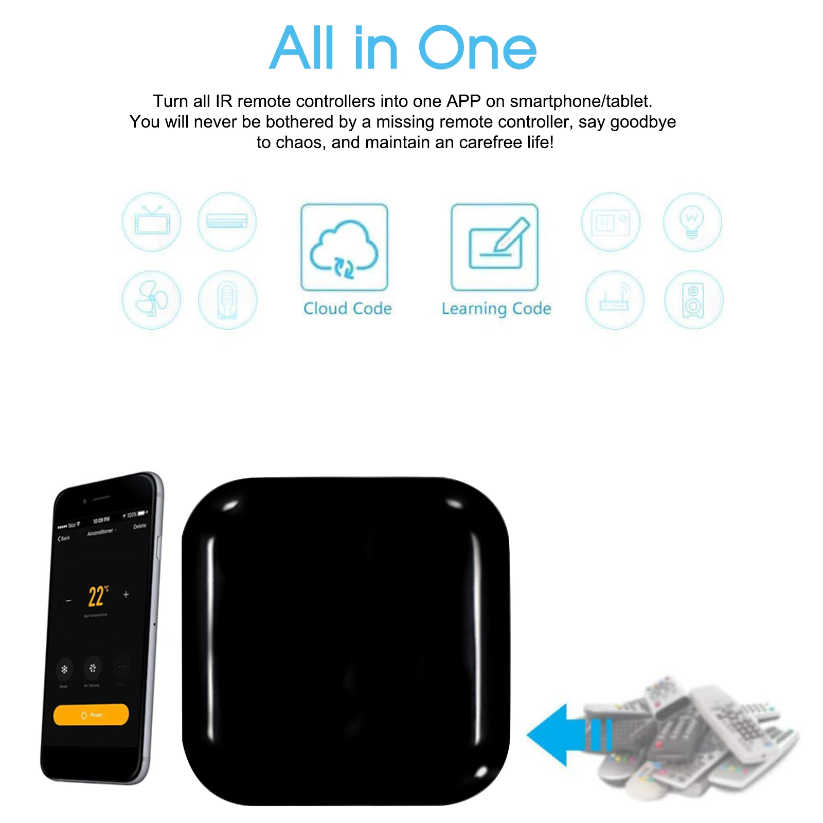 Обзор:Это универсальный пульт дистанционного управления, который может превратить все ИК-пульты дистанционного управления в один с приложением Tuya Smart/SmartLife на вашем смартфоне или планшете для интеграции управления домашними развлекательными и домашними устройствами автоматизации. Это позволяет пользователям удаленно включать/выключать подключенные устройства различных типов и брендов через приложение SmartLife/Tuya из любого места. Он также может обеспечить Голосовое управление с помощью смарт-динамиков, и он может предоставить вам удивительный опыт управления умным домом. Вы можете настроить для своей семьи и наслаждаться душевным спокойствием. Особенности:【Контроль приложения 】Управляйте ИК-приборами с помощью приложения Tuya Smart или приложения Smart Life в любом месте в любое время. Превратите базовые домашние устройства в умные устройства и Сделайте жизнь умнее и удобнее. 【Совместимость 】Поддерживает 50000 + IR (38 кГц ИК только в том случае, нет радиочастотных) управляемых устройств, включая свой кондиционер, ТВ, ТВ коробка, DVD, аудио, видео Регистраторы, приемник, и т. д. С большой инфракрасной базой данных, обновление автоматически на облаке. 【Голосовое управлениеСовместим с Alexa/Echo, Google Home для голосового управления вашим телевизором, STB, кондиционером и вентиляторами. Устройство поддерживает только 2,4G WiFi. 【Функция обучения 】Узнайте свой ИК-пульт дистанционного управления, если модель прибора недоступна. Возможность программировать функции ваших устройств, если определенные облачные данные недоступны. 【Все в одном 】Превратите весь ИК-пульт дистанционного управления в одно приложение на смартфоне/планшете (максимальное количество пульта дистанционного управления, которое вы можете скопировать, не ограничено). Вас никогда не будет беспокоить отсутствующий пульт дистанционного управления, попрощайтесь с хаосом и сохраните беззаботную жизнь! Характеристики:Название продукта: универсальный пульт дистанционного управления WiFi-RFВход питания: DC5V/1AИК частота: 38KКрышка диапазона: 360 °Инфракрасный диапазон: 10-12 м (зависит от окружающей среды)Беспроводной стандарт: 2,4G 802,11 b/g/nМаксимальное количество пульта дистанционного управления, которое вы можете скопировать: неограниченноеРежим управления: мобильное приложение «Tuya/SmartLife»Платформа: для Android, iOSМатериал: АБС-пластик V0Размер изделия: 68*68*20 мм (Д * Ш * В)Товар Вес: 36 г/1,3 oz Информация о посылка:Посылка с размерами: подходящая. 7*7*4,8 см/2,8*2,8*1,9 дюймовВес посылка: подходит. 81 г/2,9 унций Посылка:1 * WiFi-ИК-пульт1 * USB кабель1 * Руководство пользователя (на английском языке)