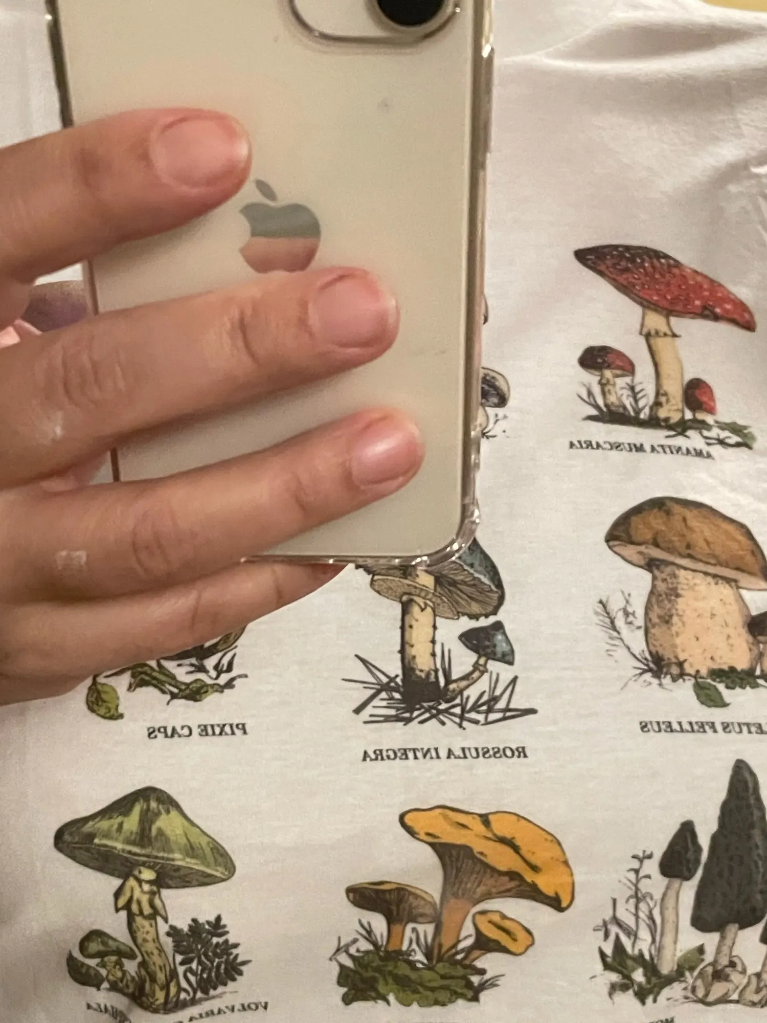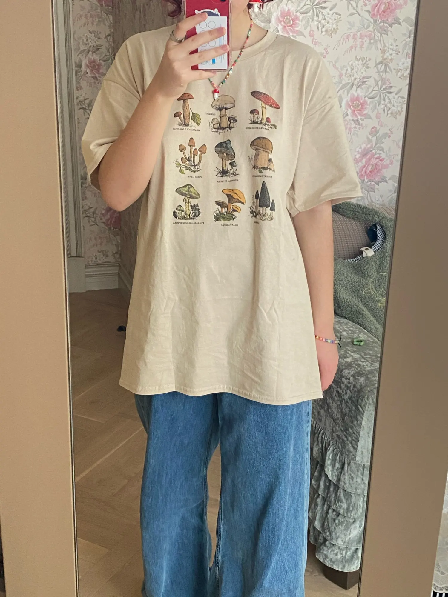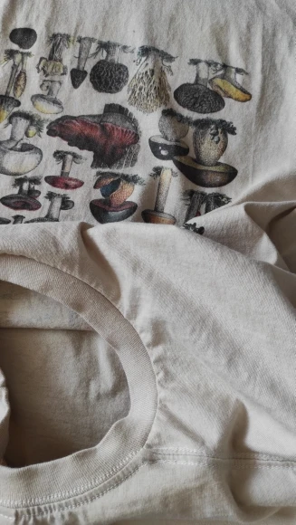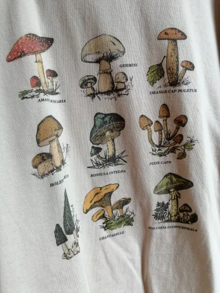 Футболка из хлопка, рисунок выполнен качественно и аккуратно. Взяла xl, чтобы было оверзайз на свою м. Зашибись мухоморы, интересные и вкусные. Доставка супер-быстрая.