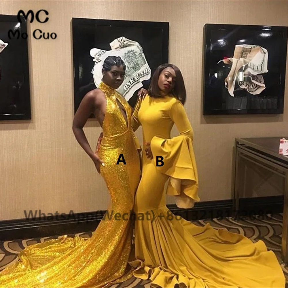 Африканское желтое вечернее платье-Русалка для выпускного вечера с блестками AB Черное женское вечернее платье на заказ
