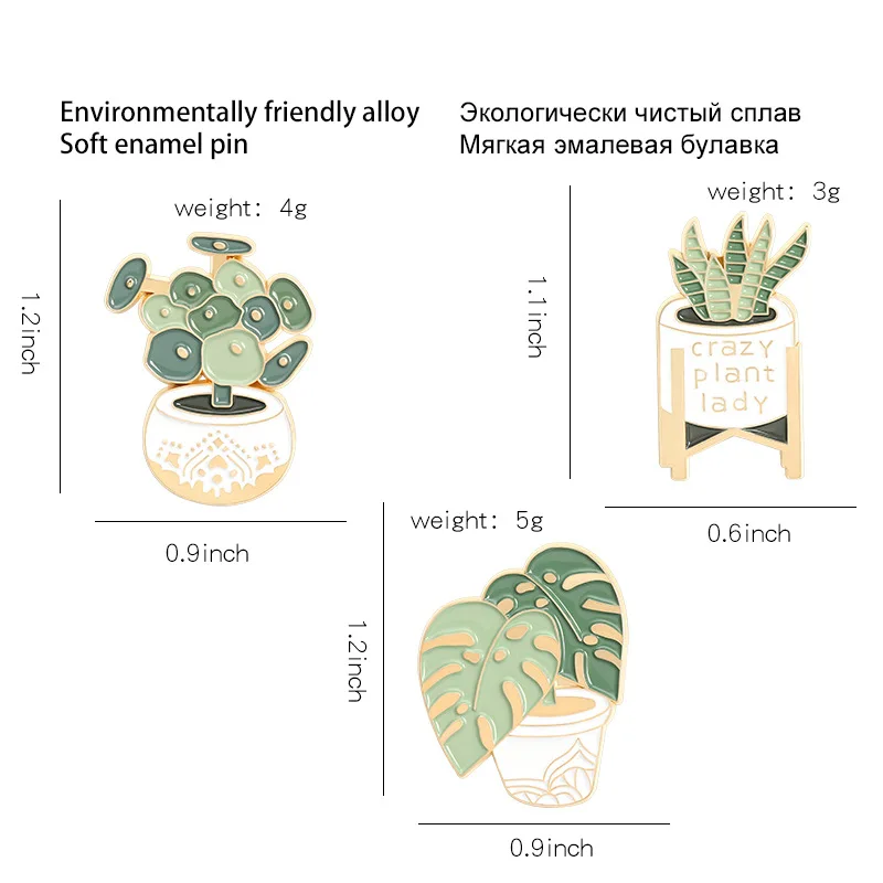 Эмалированные булавки с искусственными растениями, монстера сансеви...