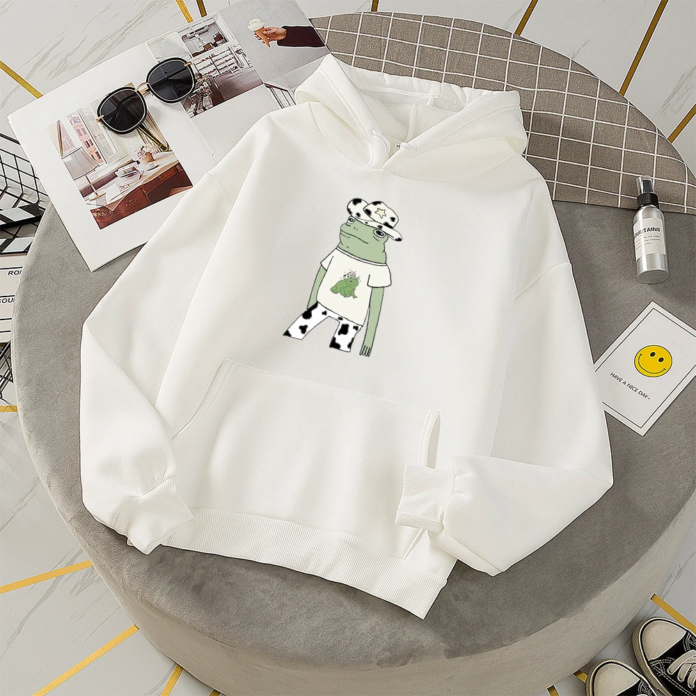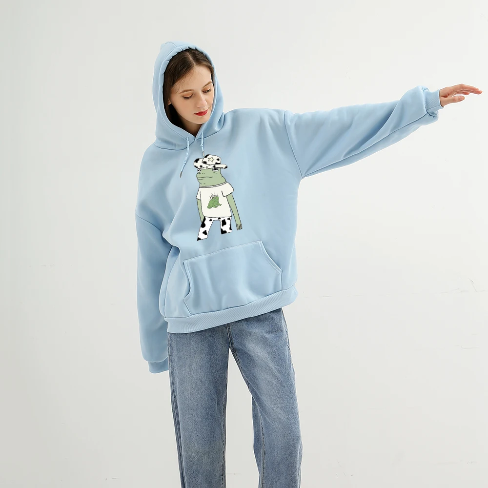 Женская куртка в виде лягушки, милые толстовки для девочек, подростковые худи с графическим принтом, женские толстовки большого размера