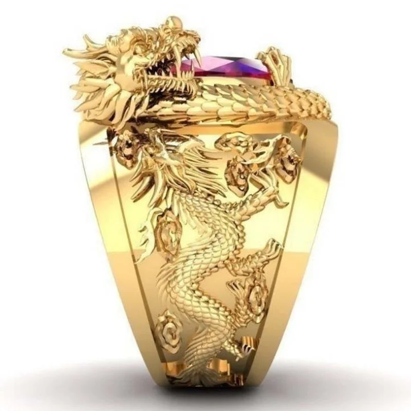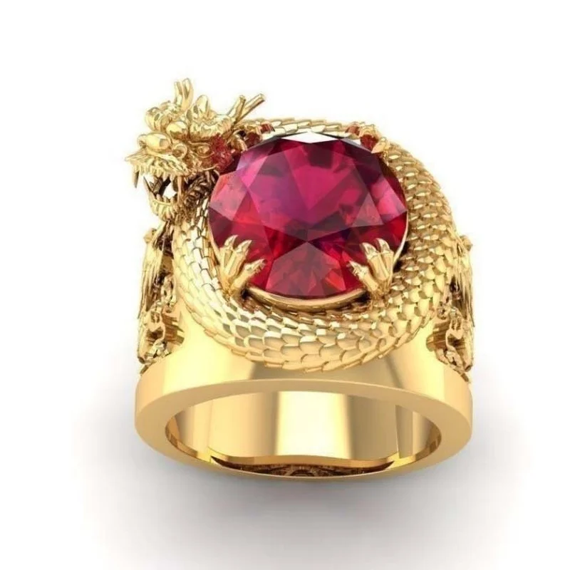 Мужское кольцо с инкрустированным Красным Кристаллом В Форме Дракона