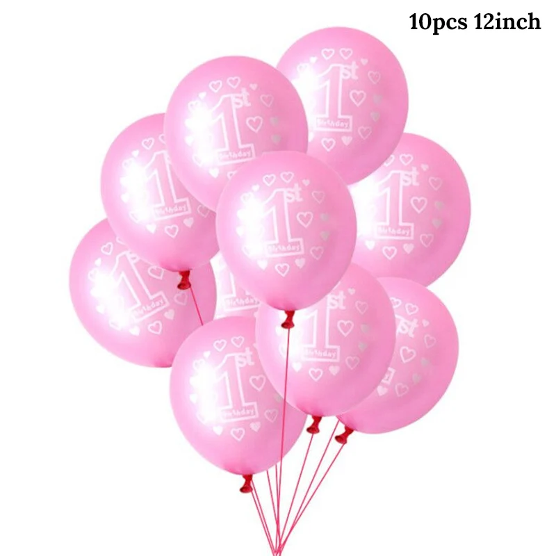 Воздушные шары розового цвета на 1-й день рождения для 1 года, 10 шт., украшение для вечеринки на первый день рождения, для латексные шары
