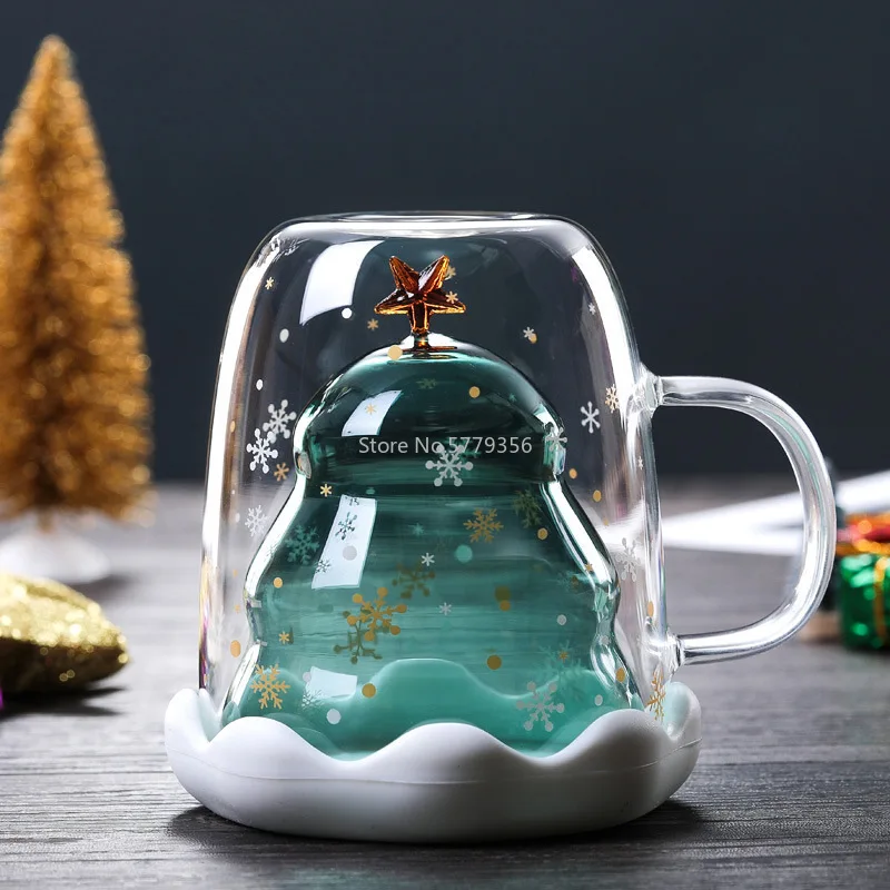 300 мл двухслойная антиожоговая стеклянная Рождественская елка звездное небо кофейная кружка термоизоляция молочная чашка для завтрака детский подарок